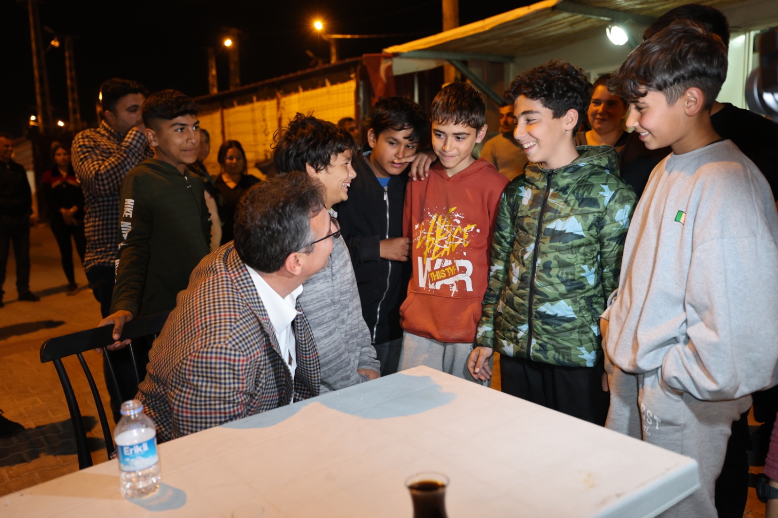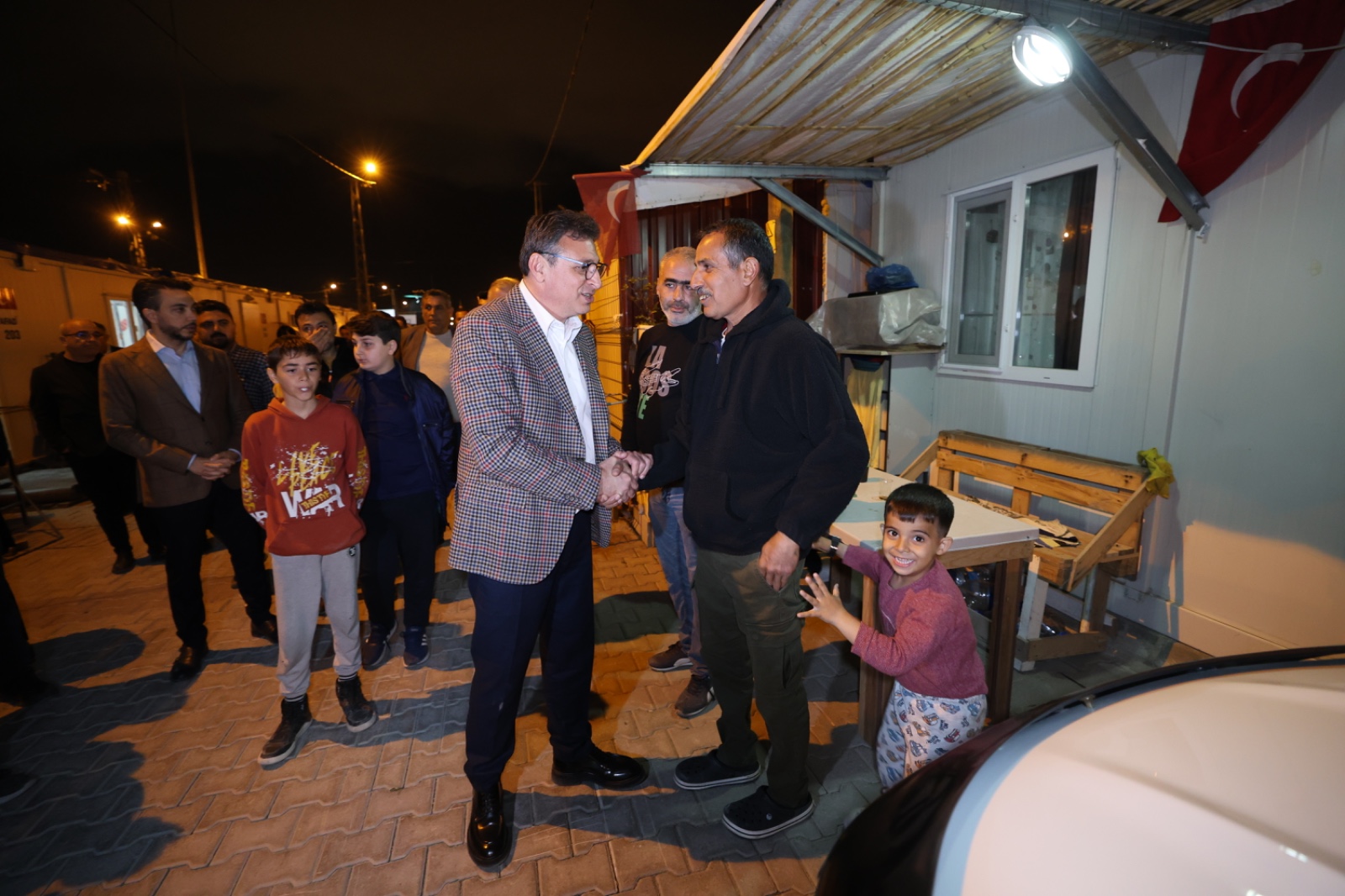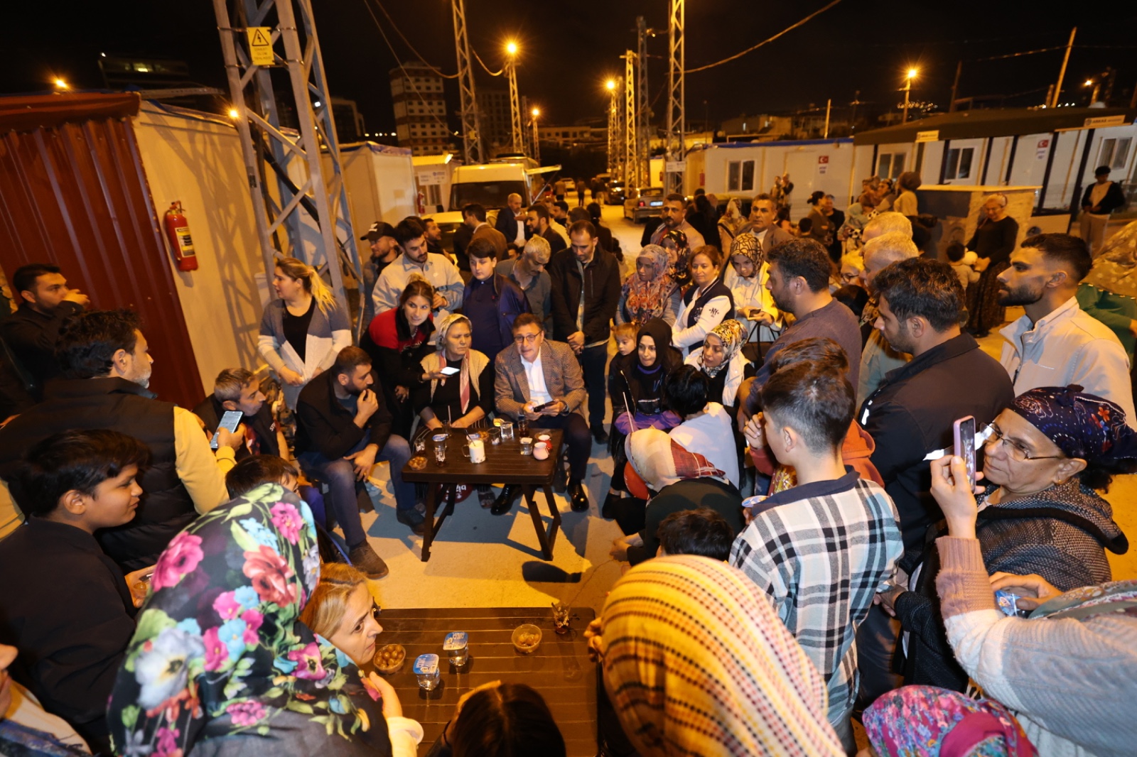 Başkan Adayı Mehmet Dönmez, iftar sonrası, Adliye Binası arkasında konuşlandırılan Arkas Konteyner Kenti ziyaret ederek, burada depremde evleri hasar gören ve yıkılan vatandaşlarımızın sorunlarını dinledi.