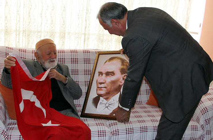 Gazimiz Şükrü Amcamızda Dörtyol Belediye Başkan Yardımcısı Yaşar Gürakan’a İlk Kurşun ve Atatürk Müzesinde sergilenmek üzere babasından kalan 150 yıllık Kore görmüş Köstekli Saatini hediye etti. Haber: Sedat İskenderoğlu/Dörtyol