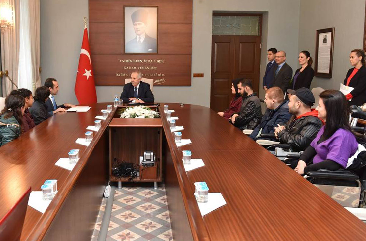 Hatay Valisi Erdal Ata, 3 Aralık Dünya Engelliler Günü dolayısıyla Hatay Engelli Koordinasyon Merkezi’nde kurs gören engelli vatandaşları Aile ve Sosyal Politikalar İl Müdür V. Ali Sandıkçı eşliğinde makamında kabul etti.