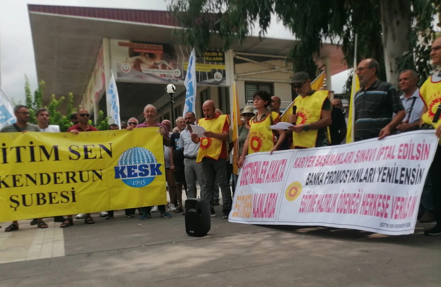 Öğretmenlik Meslek Kanununun iptal edilmesi konusundaki taleplerini ısrarla yineleyen Eğitim-Sen İskenderun Şube Başkanı Mustafa Ünsal, öğretmenlere angaryaya dönüşen seminer-sınav sürecinin durdurulması, ekonomik ve özlük hak kazanımlarının ayrımsız uygulanması gerektiğini vurguladı.