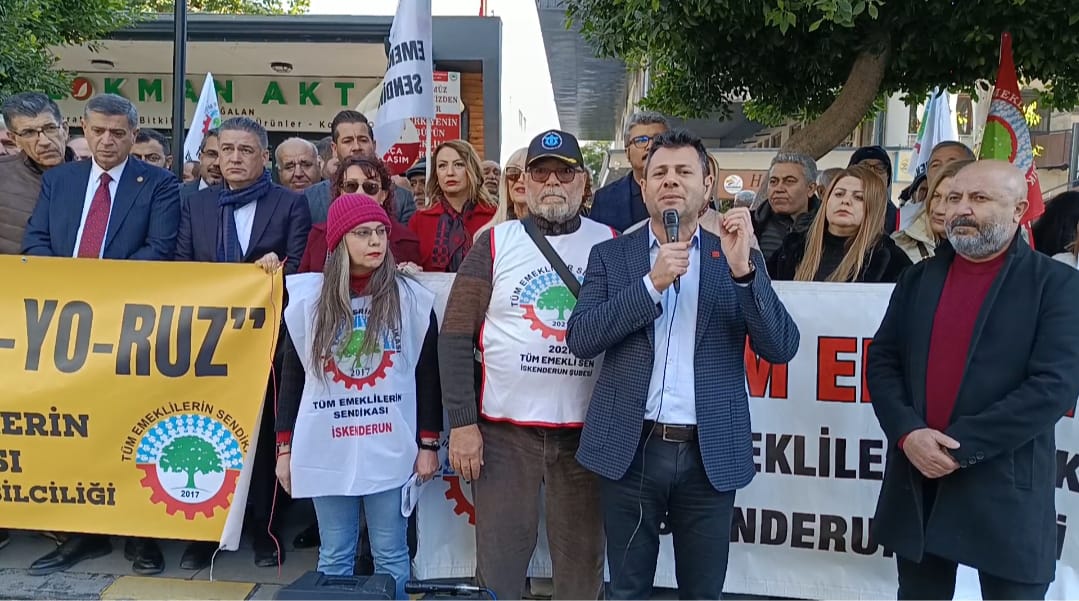 2021 Tüm Emekliler Sendikası İskenderun Şube Başkanı Mustafa Çankaya, yaptığı basın açıklamasında emeklilerin yaşadığı yoksulluğun kader olmadığını belirterek şu ifadeleri kullandı: