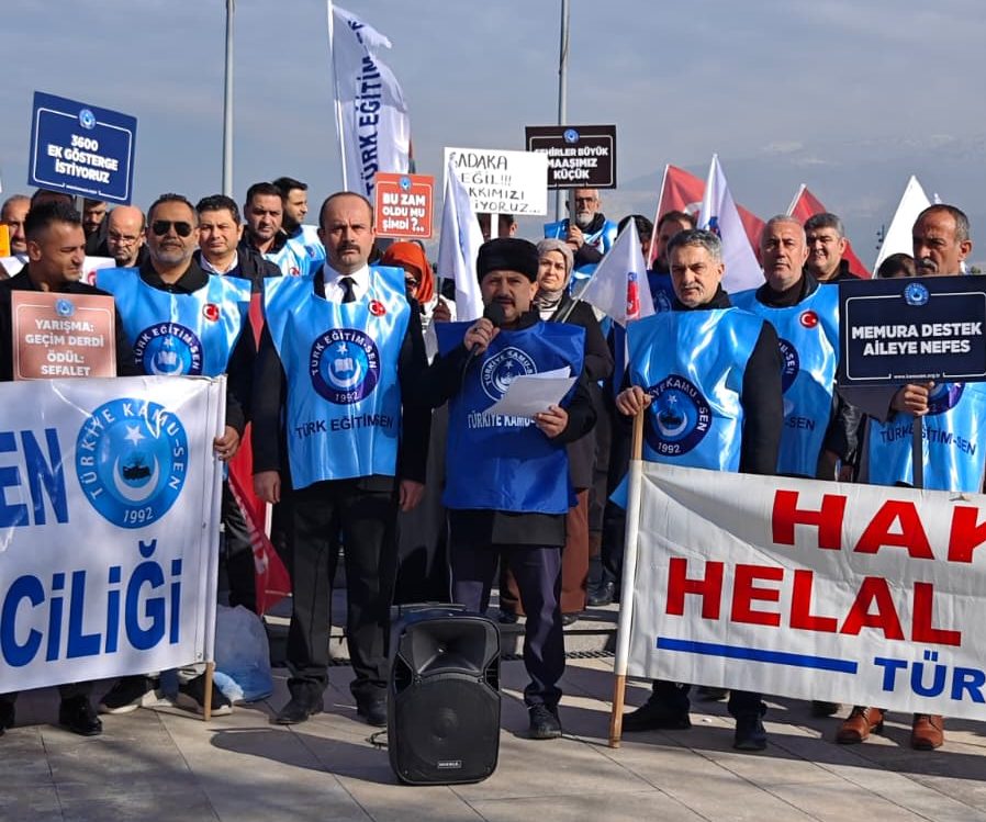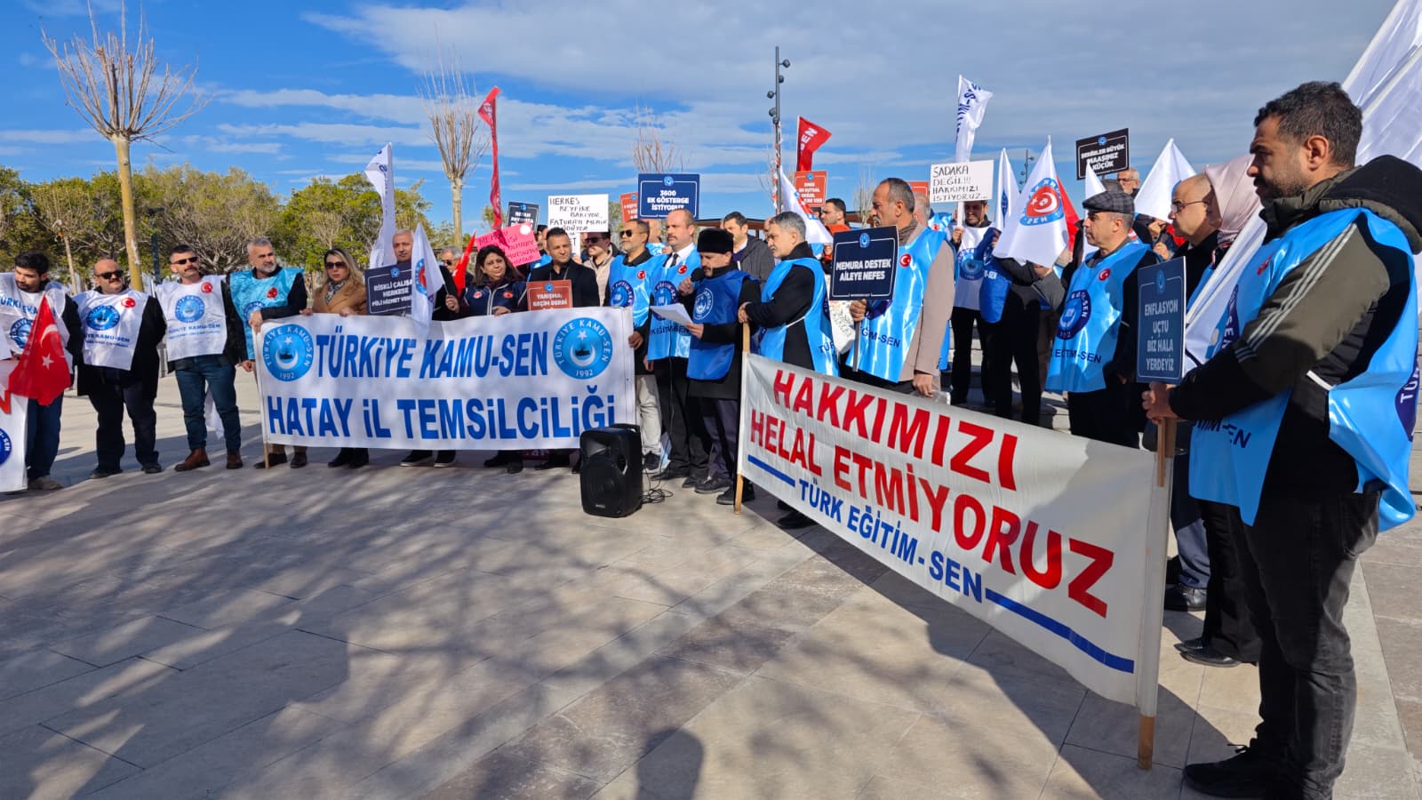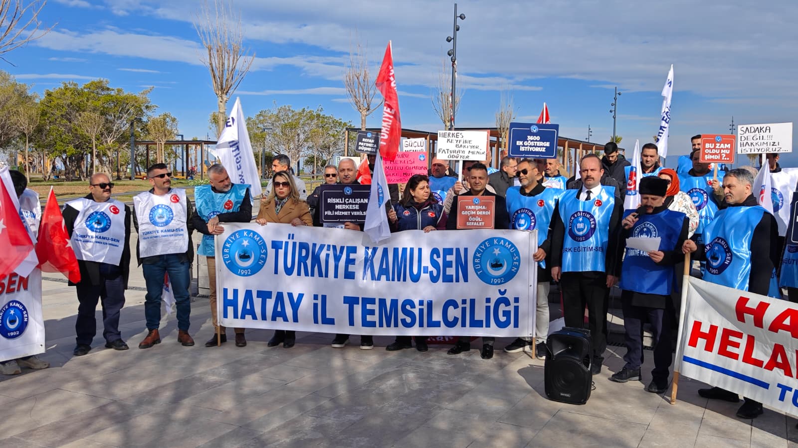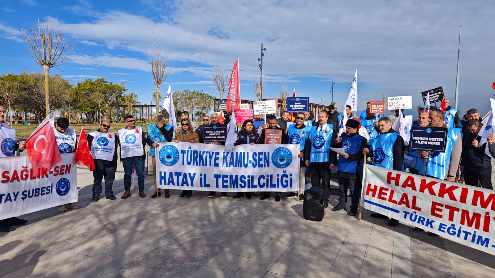 Türkiye Kamu-Sen’e bağlı sendikalar, kamu çalışanları ve emeklilerin yaşadığı ekonomik kayıplara dikkat çekmek amacıyla İskenderun Anıt Alanı’nda basın açıklaması yaptı. Açıklamaya çok sayıda sendika üyesi kamu çalışanı katıldı.