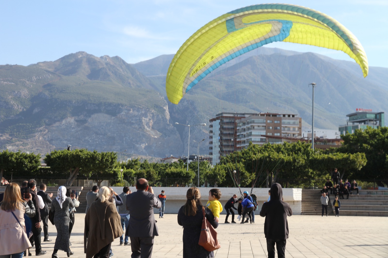 Paraşütle iniş yapan engellileri karşılayan Belediye Başkanı Fatih Tosyalı da; “Bugün Dünya engelliler farkındalık günü. Şu an anıt alanındayız, iki kardeşimiz paraşütle iniş yaptı, onların yanındayız, heyecan ve mutluluklarını paylaşıyoruz” dedi. (Haber: Helga TERBİYELİ)