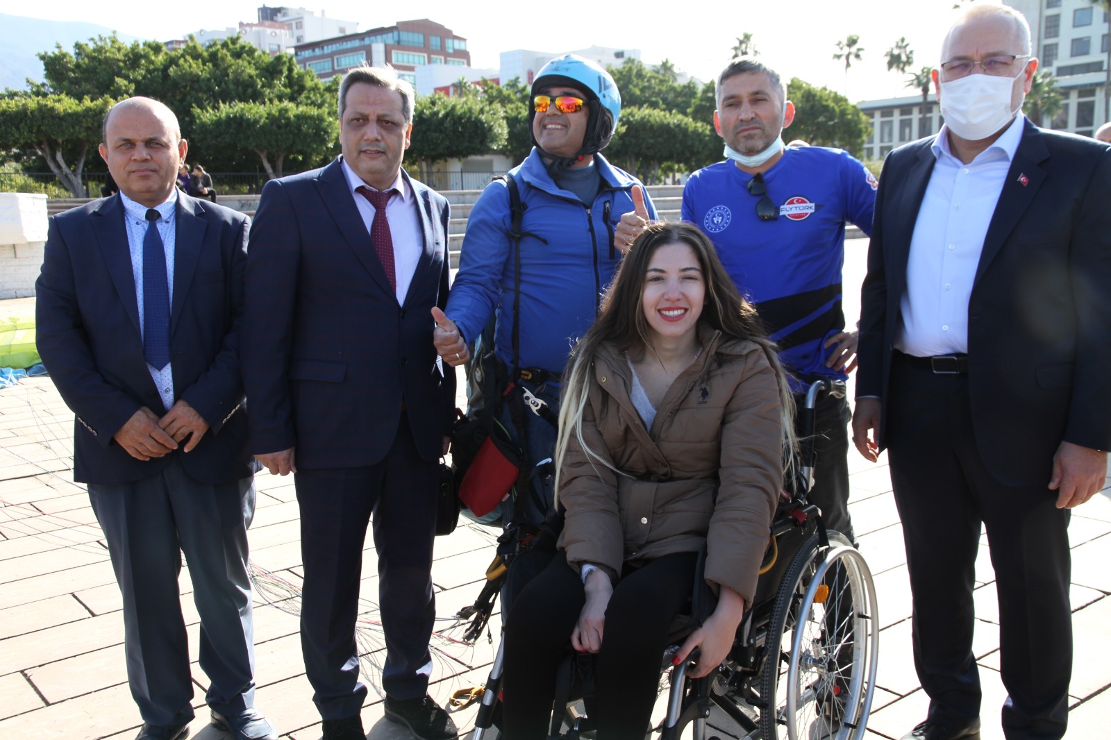 3 Aralık Dünya Engelliler Gününde, İskenderun Beyaz Ay Derneği, farklı bir etkinliğe imza attı. Etkinlik kapsamında, iki engelli vatandaş paraşütle Anıt Alanına iniş yaptı. İskenderun Belediye Başkanı Fatih Tosyalı’nın da hazır bulunduğu etkinlikte paraşütle anıt alanına iniş yapan engelliler heyecanlarını gizleyemedi.