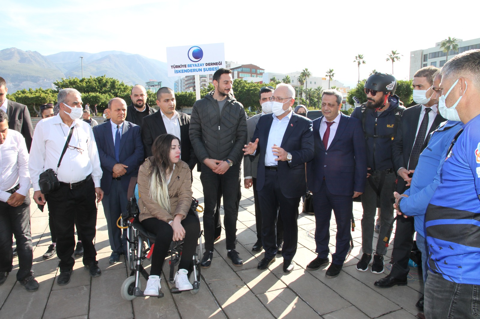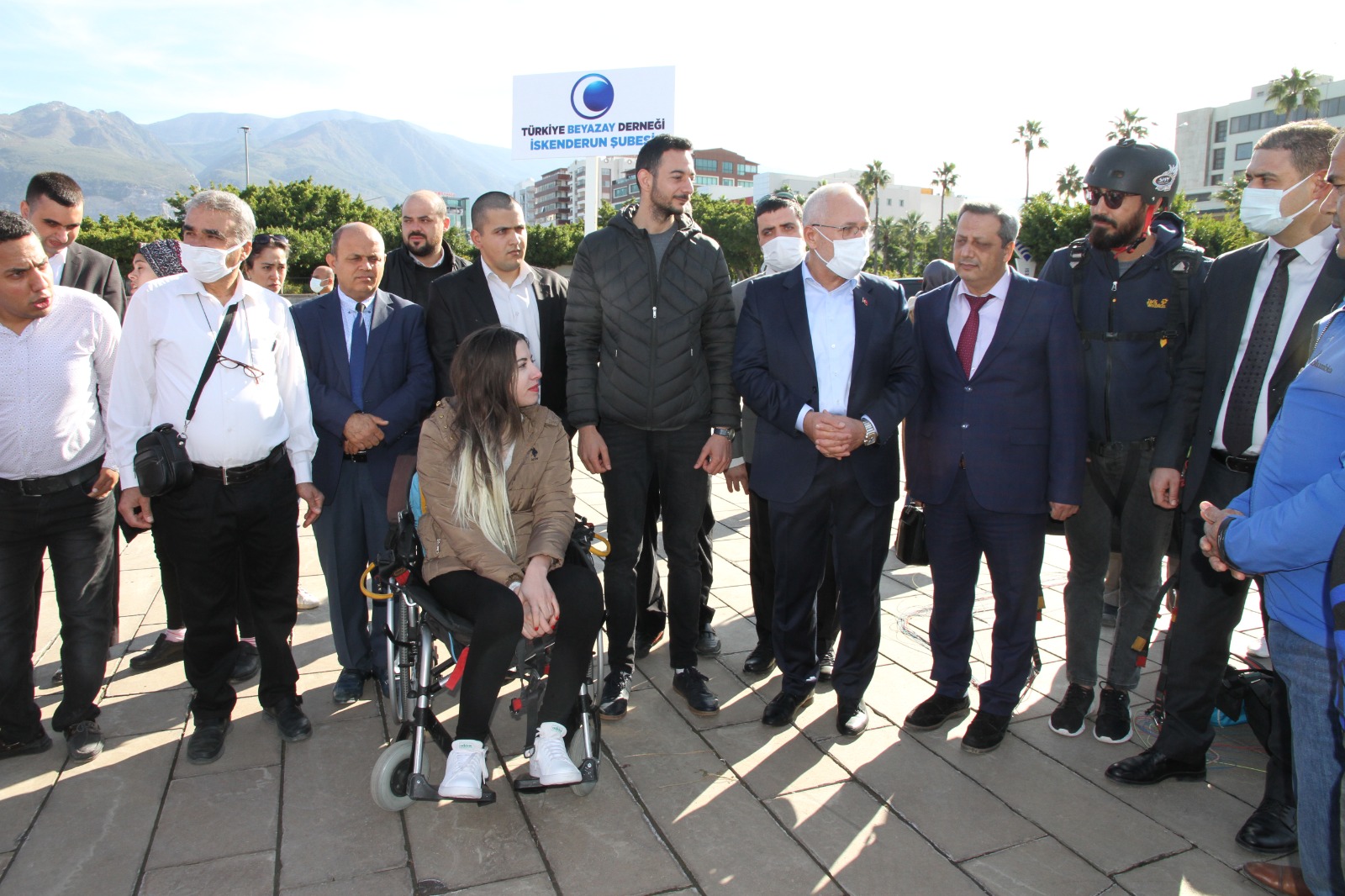 3 Aralık Dünya Engelliler Gününde, İskenderun Beyaz Ay Derneği, farklı bir etkinliğe imza attı. Etkinlik kapsamında, iki engelli vatandaş paraşütle Anıt Alanına iniş yaptı. İskenderun Belediye Başkanı Fatih Tosyalı’nın da hazır bulunduğu etkinlikte paraşütle anıt alanına iniş yapan engelliler heyecanlarını gizleyemedi.