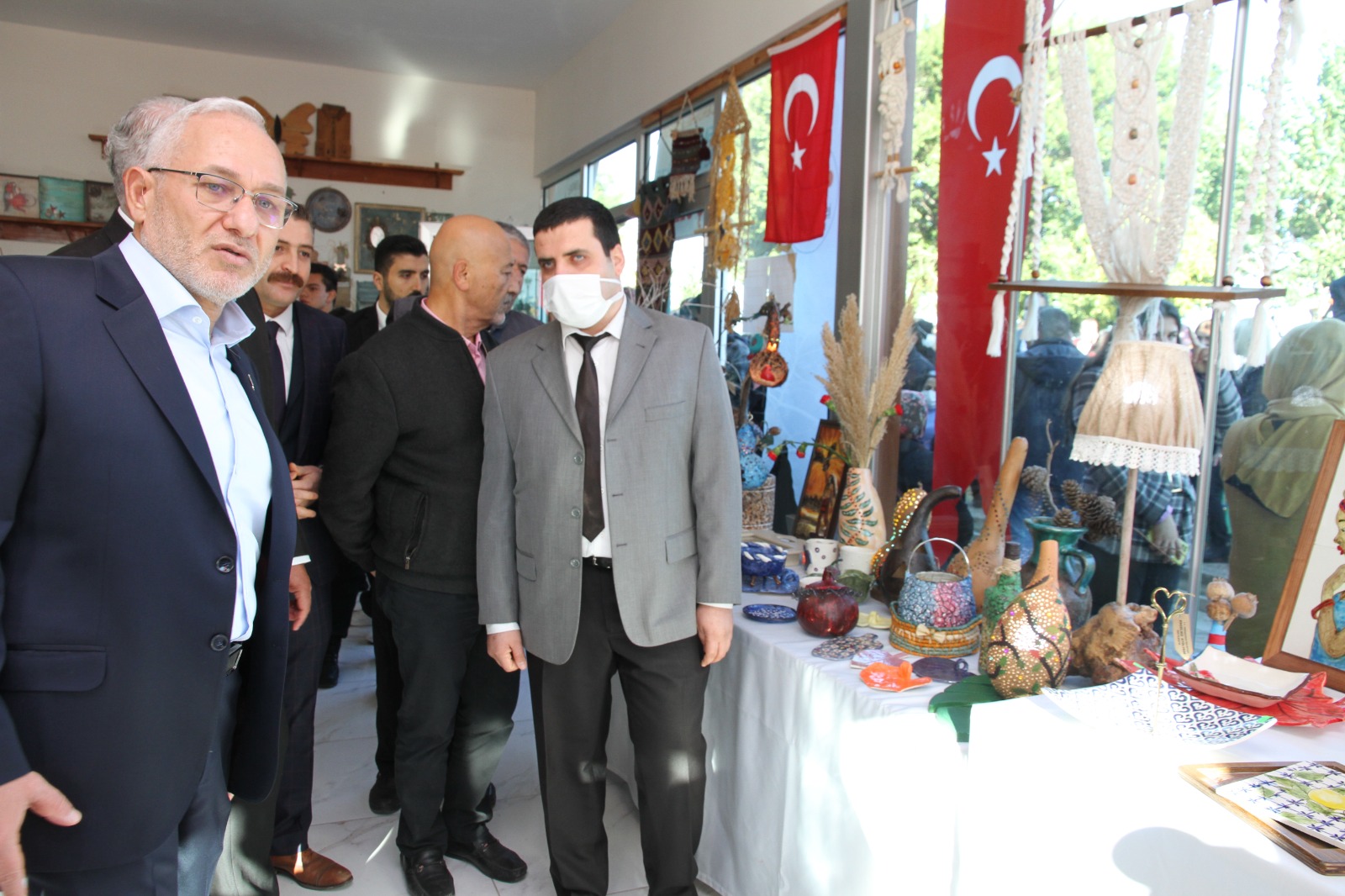 Gerçekleştirilen kurdele kesiminin ardından, tüm katılımcılar sergiyi gezerek ürünler hakkında bilgiler aldılar.