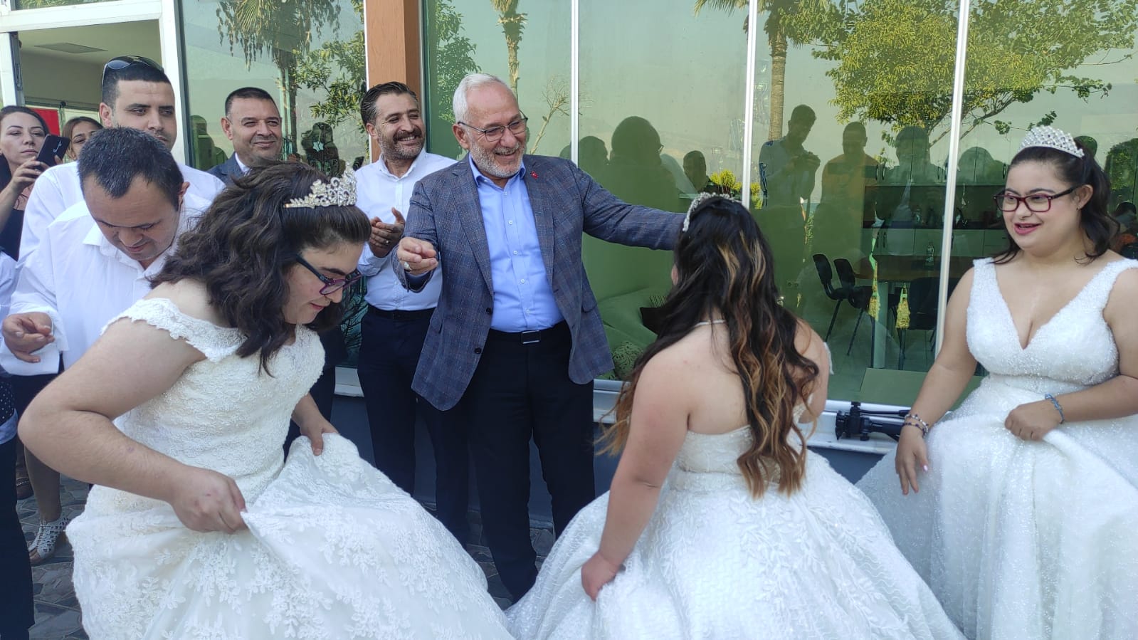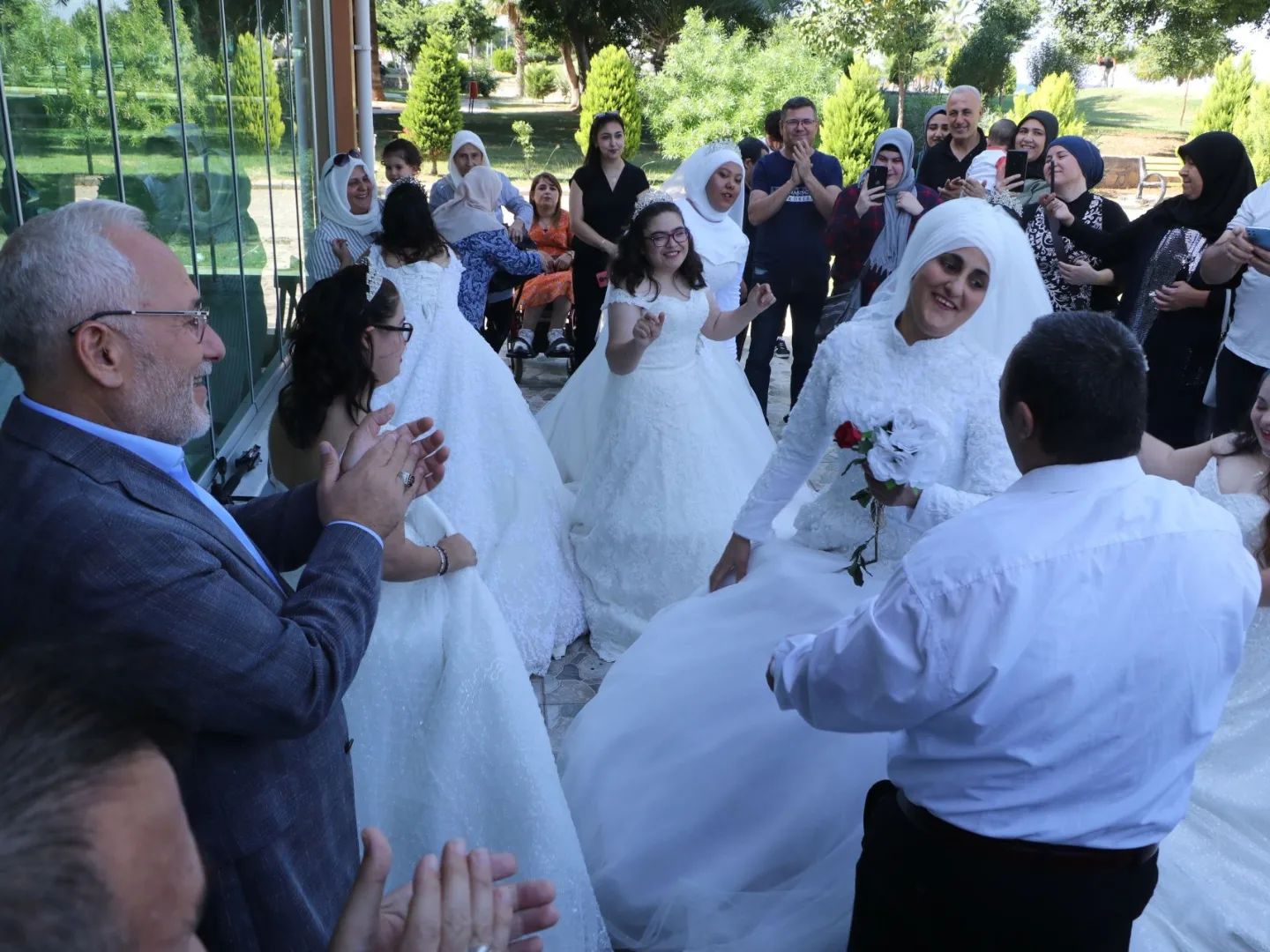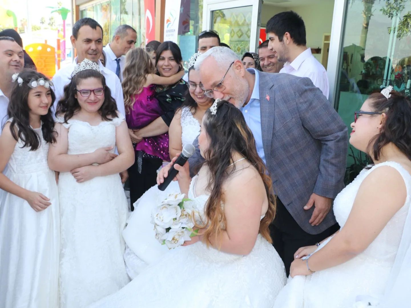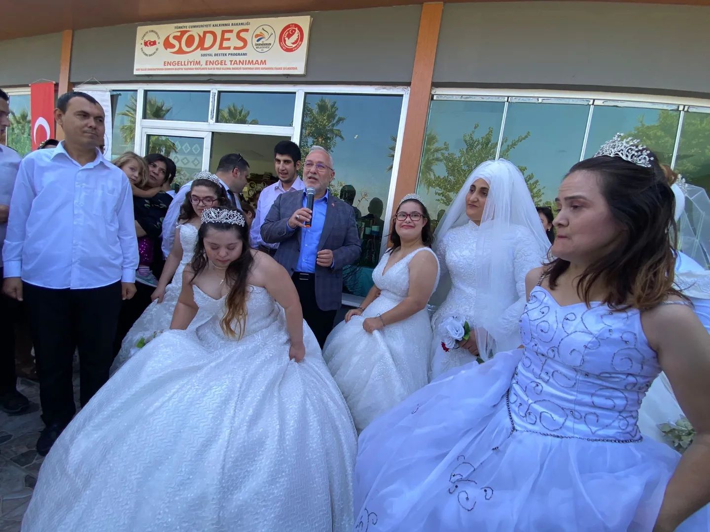 Beyaz gelinlikler içerisinde prensesler gibi olan genç kızlarımızın bu mutluluğuna ortak olan İskenderun Belediye Başkanı Fatih Tosyalı da; “Gelinlerin en güzeli bizim kızlarımız olmuş, hepsi birbirinden güzel olmuş, onlara büyük bir alkış istiyorum. Sekiz kardeşimize gelinlik giydirdik. Bu gelinlerimiz İskenderun’un en güzel gelinleri. Bu kardeşlerimizin arzularını gerçekleştirmenin mutluluğunu hep beraber yaşıyoruz. Ben de çok mutluyum sizlerle birlikte olduğum için. Umarım hayatta her istedikleri gerçek olur” şeklinde konuştu.
