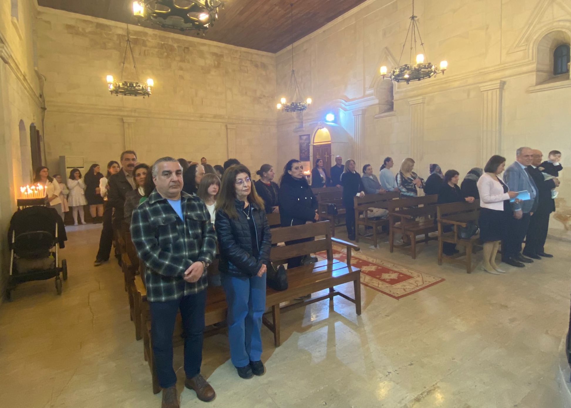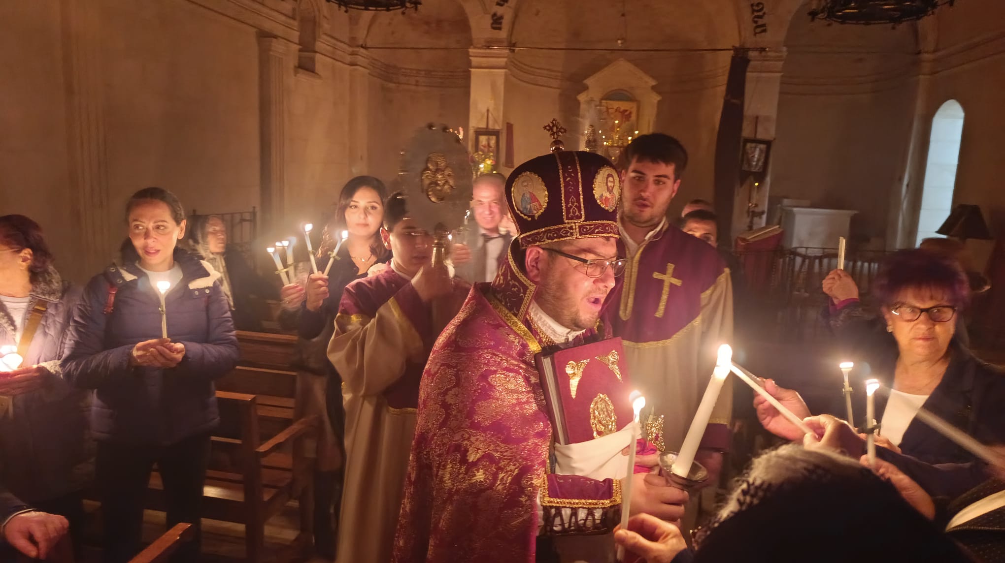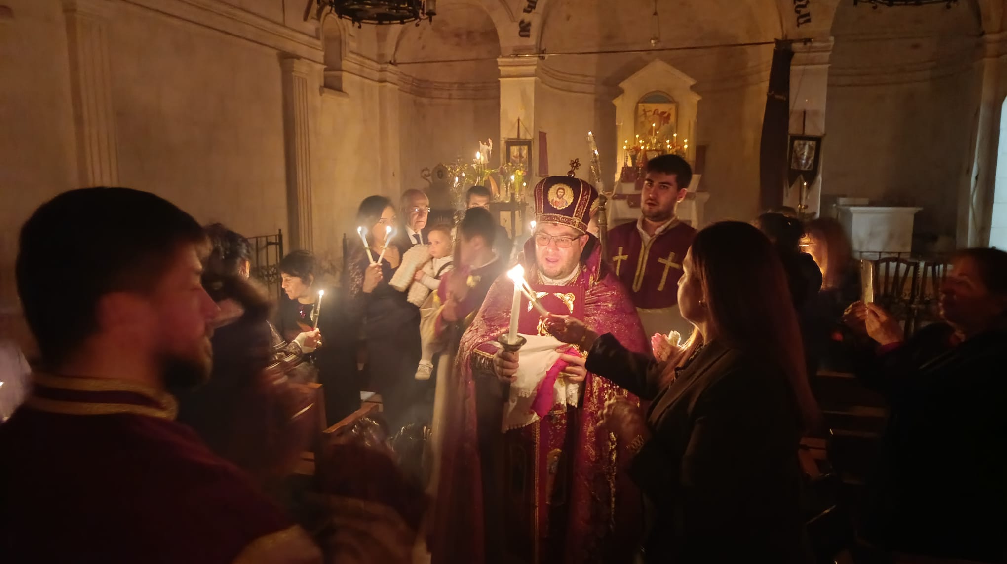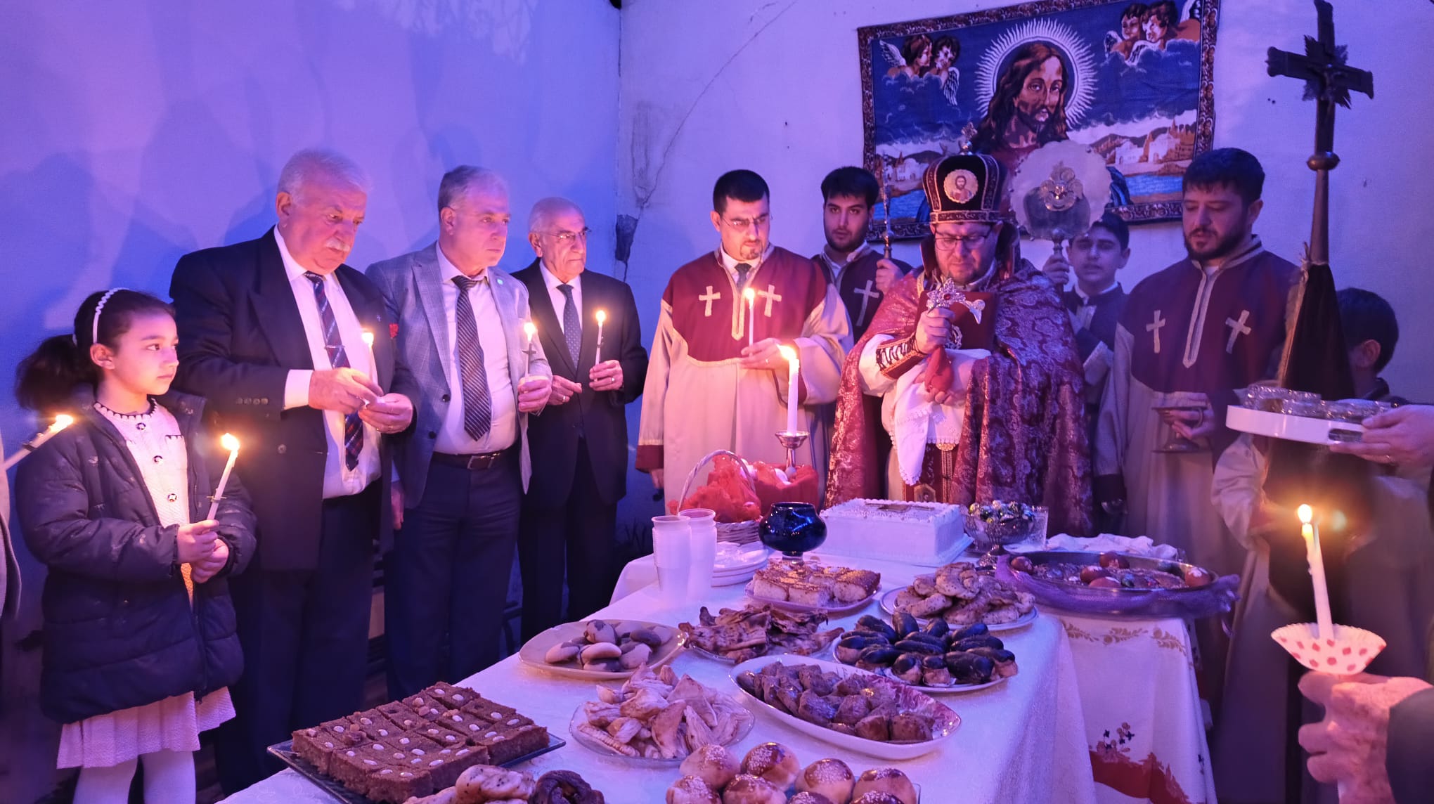 Ayin sırasında kilisenin ışıklarının söndürülmesiyle Peder Tabaşyan’ın elindeki mumdan, mumlarını yakan cemaat karanlığı aydınlatırken, ilahiler eşliğinde kilise bahçesine geçildi. Peder Tabaşyan, kilise bahçesinde ilahiler eşliğinde ekmek, yumurta, su ve tuzu kutsadı.