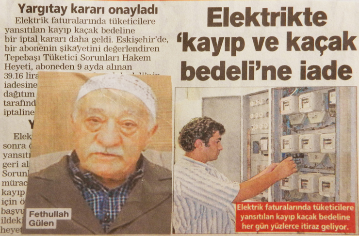Elektrik faturalarında tüketicilere yansıtılan ‘Kayıp-Kaçak’ elektrik bedelinin ‘aboneye iadesi’ kararı, Yargıtay tarafından onaylandı. Şu FETÖ Lideri denen zatın adresi belli, Pensilvanya’da cirit atıyor. ‘Kayıp’ değil ama ‘Kaçak!’ Darbe Girişiminin ‘bedelini’ vade farkı ve misliyle ödemesi gereken bu ‘Kaçak’ ne zaman ‘iade’ edilecek? Merak konusu!