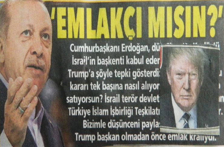 Recep Tayyip ERDOĞAN (Cumhurbaşkanı): “Kudüs’ü İsrail’in başkenti ilan etmiş. Kimin malını, kime veriyor. Sen Emlakçı mısın?”