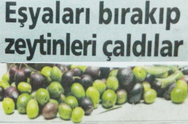 Hırsızlar eskiden ev ve işyerlerini soyar, ne varsa alıp götürürlerdi. Adamlar uyanık! Bu zamanda zeytin ‘Altın’ değerinde! Eşyadan daha iyi para ediyor.