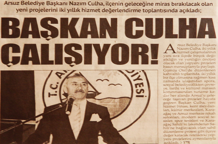 Arsuz Belediye Başkanı Nazım Culha ‘Şeffaflık ve Dürüstlük’ ilkelerine sıkı sıkıya bağlılığı ile tanınır. Başkan Culha ‘Çalışıyor ama Çalmıyor!’ Birileri yolsuzluk ve rüşvete gırtlağına kadar batmışsa, kul hakkına, tüyü bitmemiş yetimlerin ona emanet edilen paralarına bile tenezzül edip ‘Çatır-Çatır’ çalıyorsa bilin ki sadece çalışır gibi gözüküyor. İşin özeti o zat ‘Çalışmıyor ama Çalıyor!’