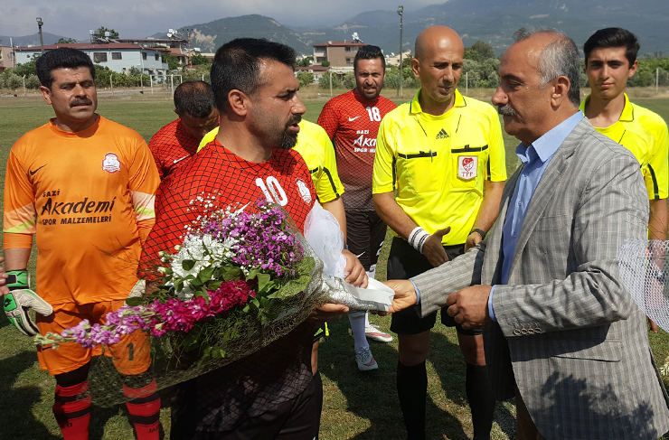 Konuşmasının ardından, İskenderun Veteranlar Spor Kulübü Genel Sekreteri Hasan Korkmaz, Arsuz Belediye Başkanı Nazım Culha’ya final maçlarına ev sahipliği yapması ve desteklerinden dolayı teşekkür plaketi takdim etti.