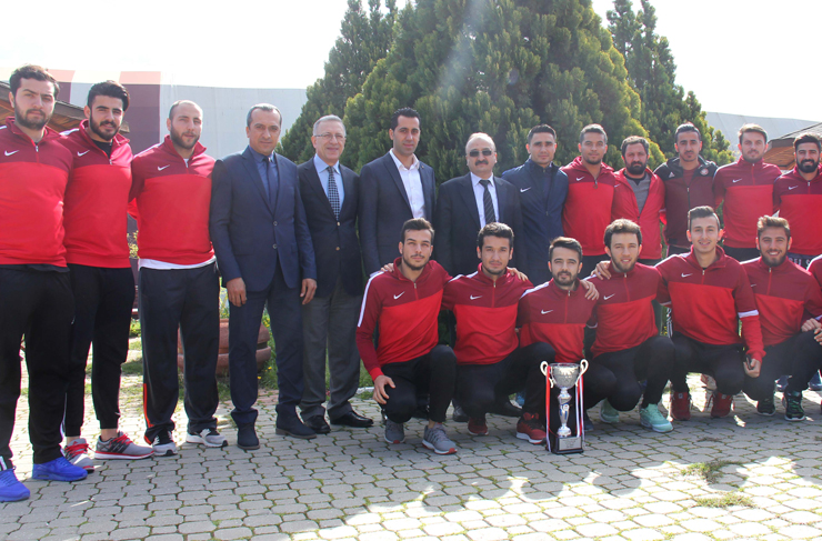 FUTSAL takımı oyuncularıyla kahvaltı organizasyonunda bir araya gelen MKÜ Rektör Yardımcısı Prof. Dr. Mehmet Kılınç, takım antrenörü Yrd. Doç. Dr. Mahmut Külle ve sporculara teşekkür ederek başarılarının devamını diledi ve birincilik kupasıyla poz verdi. Organizasyona Sağlık Kültür ve Spor Daire Başkanı Mustafa Tiyekli, Şube Müdürü Hamdi Mirioğlu ve ilgili çalışanlar eşlik etti.