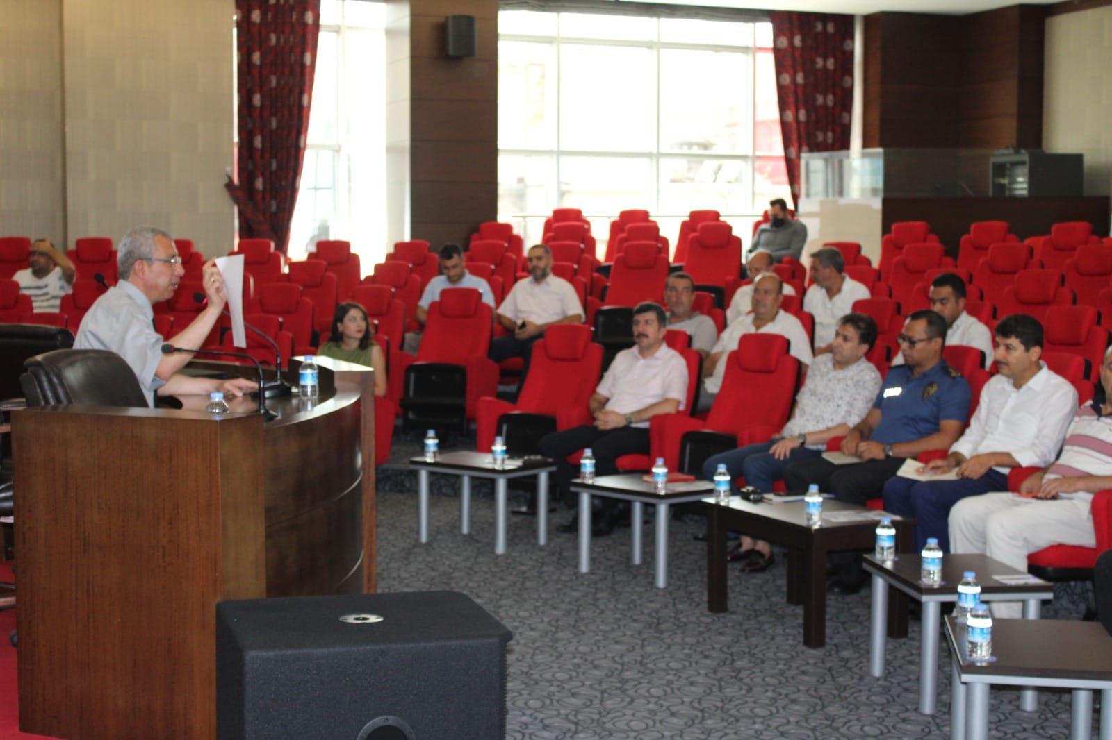 Toplantıda, ilçemiz genelinde tüm mahallelerde asayiş, güvenlik ve huzurun temin ve tesisine ilişkin hususlar başta olmak üzere eğitim, sağlık, idari, teknik ve teknolojik vb. kamu hizmetlerinin işleyişi ele alındı. Mahalle muhtarları ile kurum müdürlerinin fikir ve önerileri de alınmak suretiyle detaylıca ve çözüm odaklı istişareler de bulunuldu.