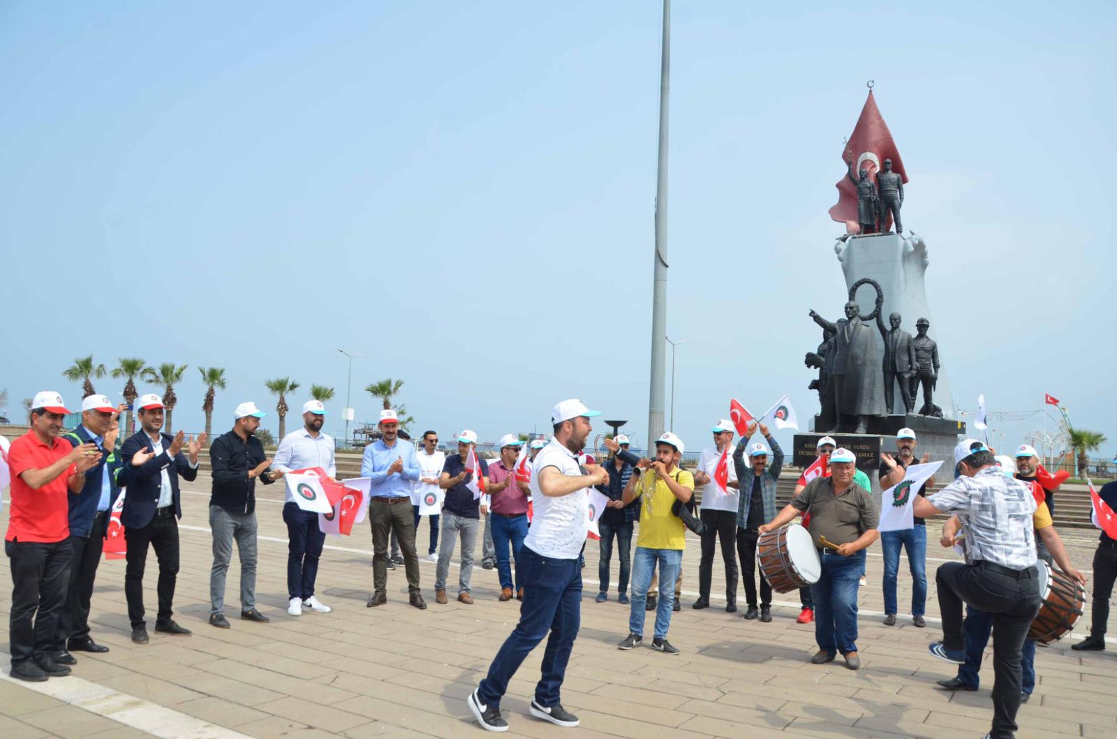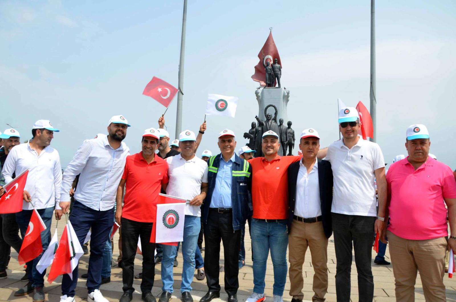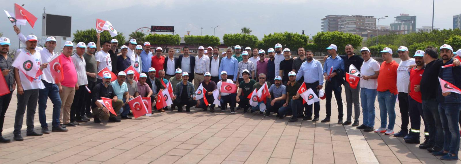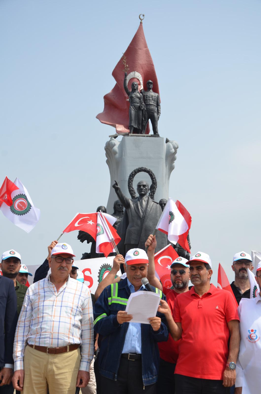 /Daha sonra söz alan Öz-Sağlık İş Sendikası Hatay Şube Başkanı Fehmi Azboy da; “Ülkemizin kalkınması, milletimizin refahı için canla başla alın ve akıl teri döken; güçlü Türkiye’nin mimarları tüm işçi ve emekçi kardeşlerimin 1Mayıs Emek ve Dayanışma Günü’nü tebrik ediyorum” dedi. (Haber Merkezi)