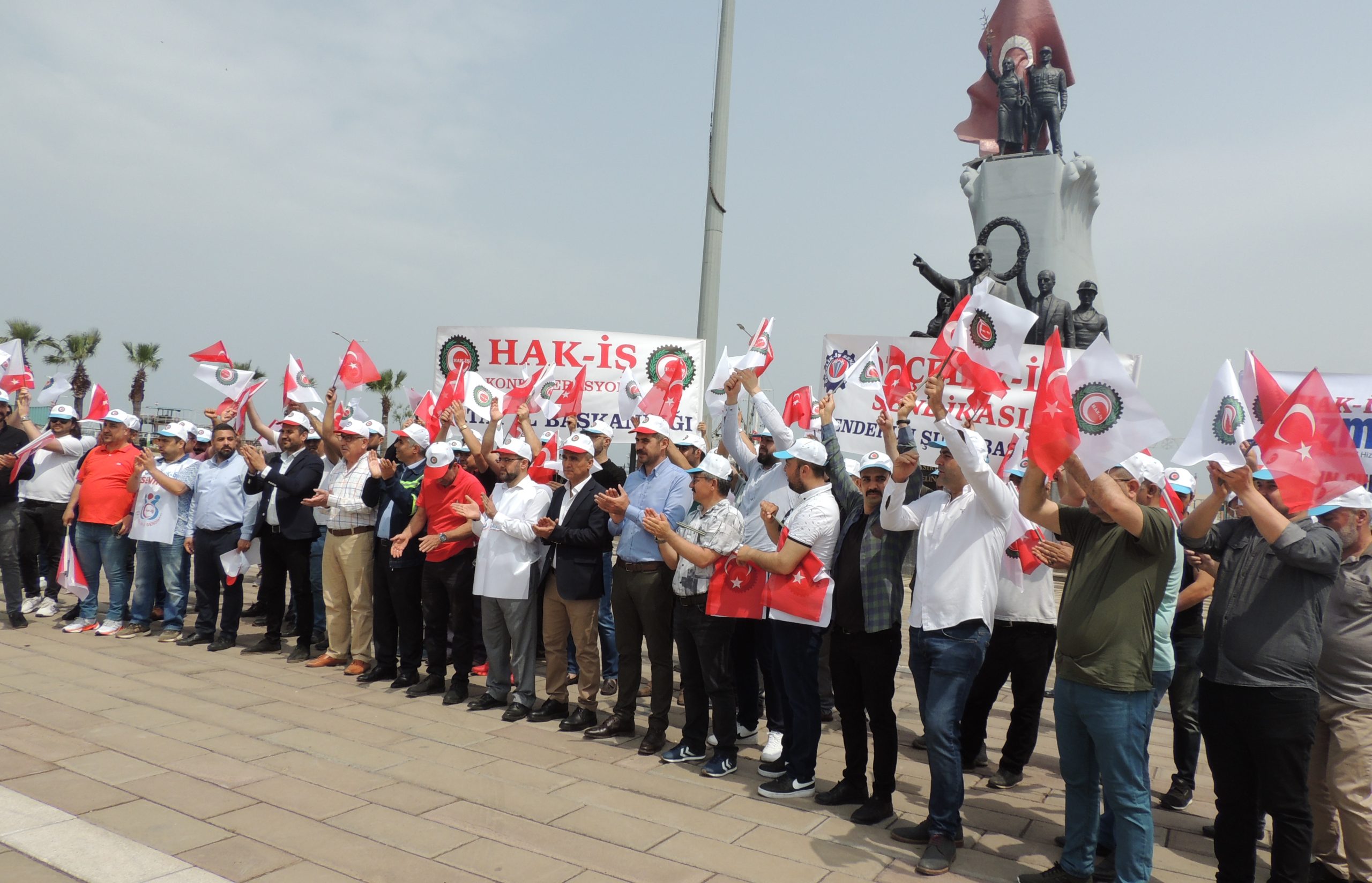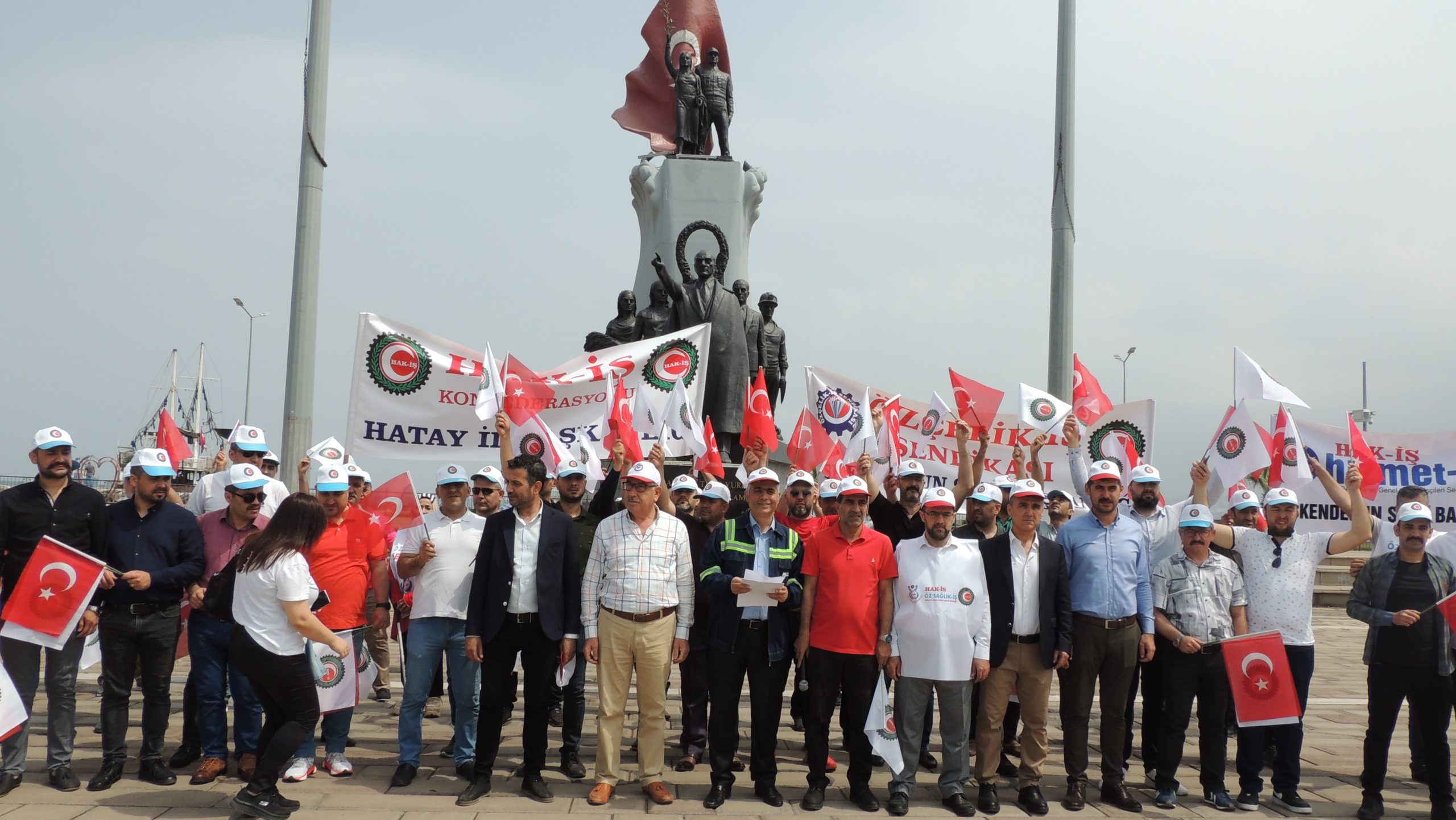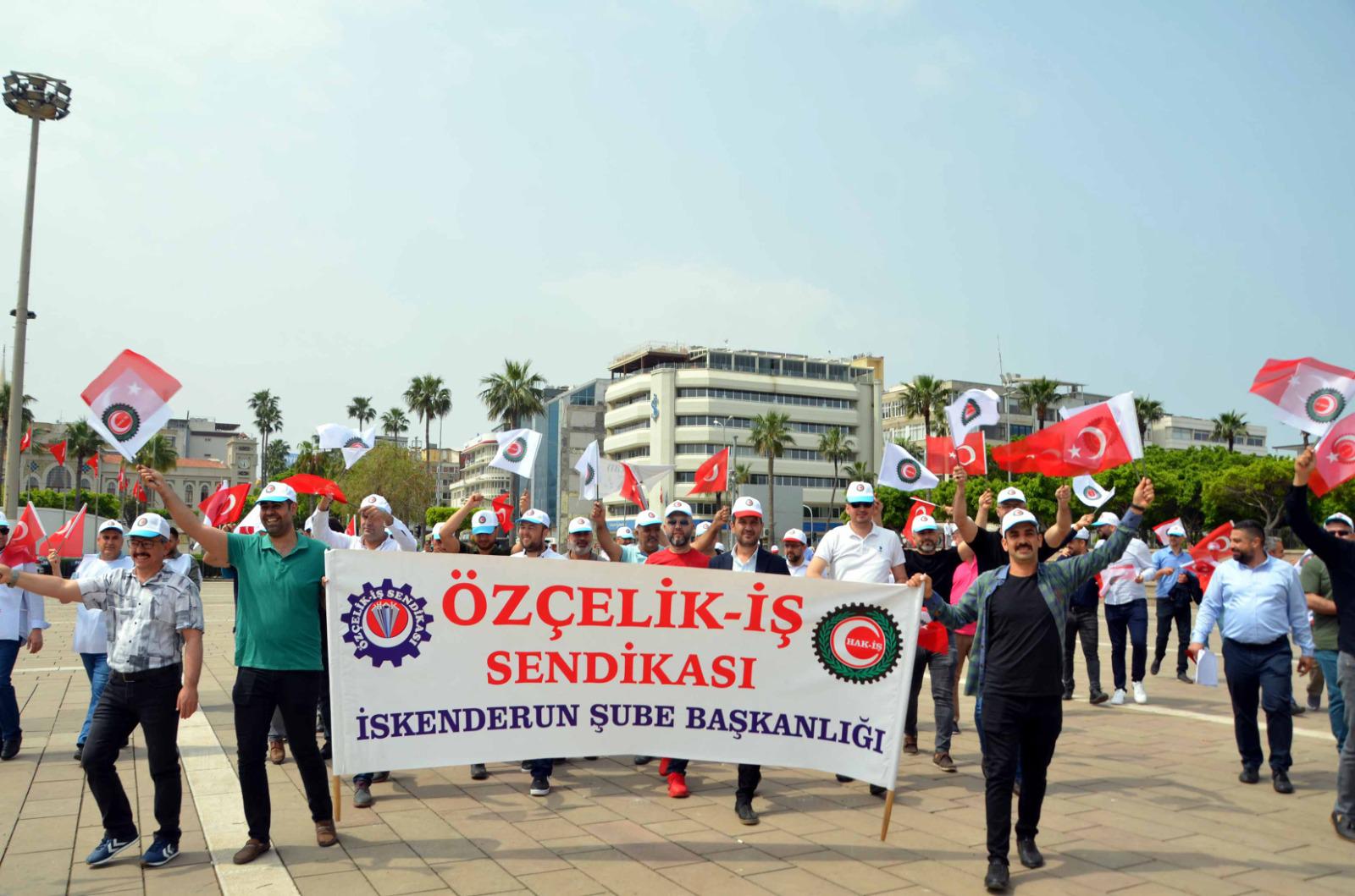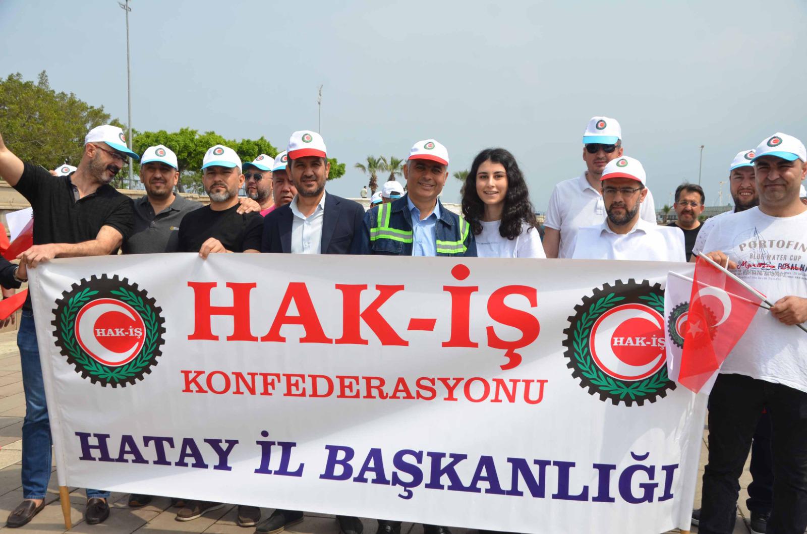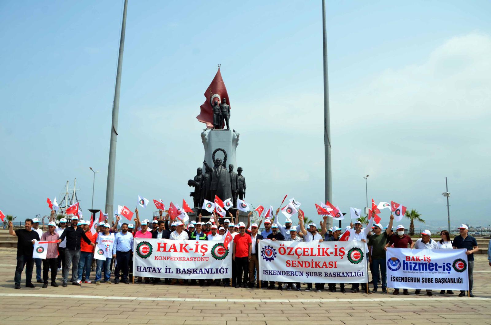 Hak-İş Konfederasyonu Hatay İl Başkanlığı, 1 Mayıs’ı İskenderun Atatürk Anıt Alanında coşkuyla kutladı. 1 Mayıs Birlik ve Dayanışma Günü kutlamalarına Özçelik-İş Sendikası İskenderun Şube Başkanlığının yanı sıra Hak-İş’e bağlı Hizmet-İş Sendikası İskenderun Şube Başkanı Mehmet Yetim ve üyeleri, Öz-Sağlık İş Sendikası Hatay Şube Başkanı Fehmi Azboy ve üyeleri de iştirak etti.