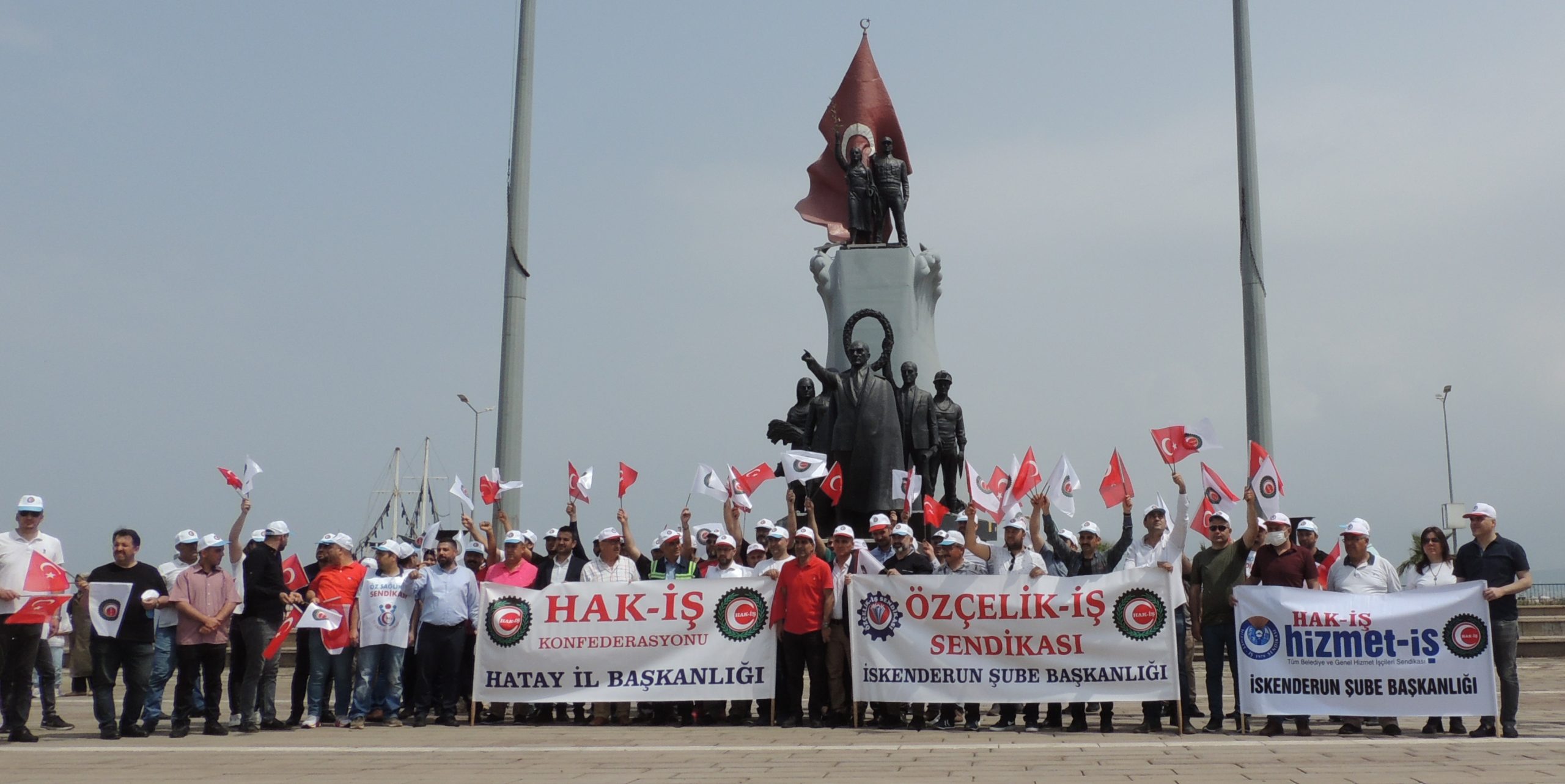 Hak-İş Konfederasyonu Hatay İl Başkanlığı, 1 Mayıs’ı İskenderun Atatürk Anıt Alanında coşkuyla kutladı. 1 Mayıs Birlik ve Dayanışma Günü kutlamalarına Özçelik-İş Sendikası İskenderun Şube Başkanlığının yanı sıra Hak-İş’e bağlı Hizmet-İş Sendikası İskenderun Şube Başkanı Mehmet Yetim ve üyeleri, Öz-Sağlık İş Sendikası Hatay Şube Başkanı Fehmi Azboy ve üyeleri de iştirak etti.