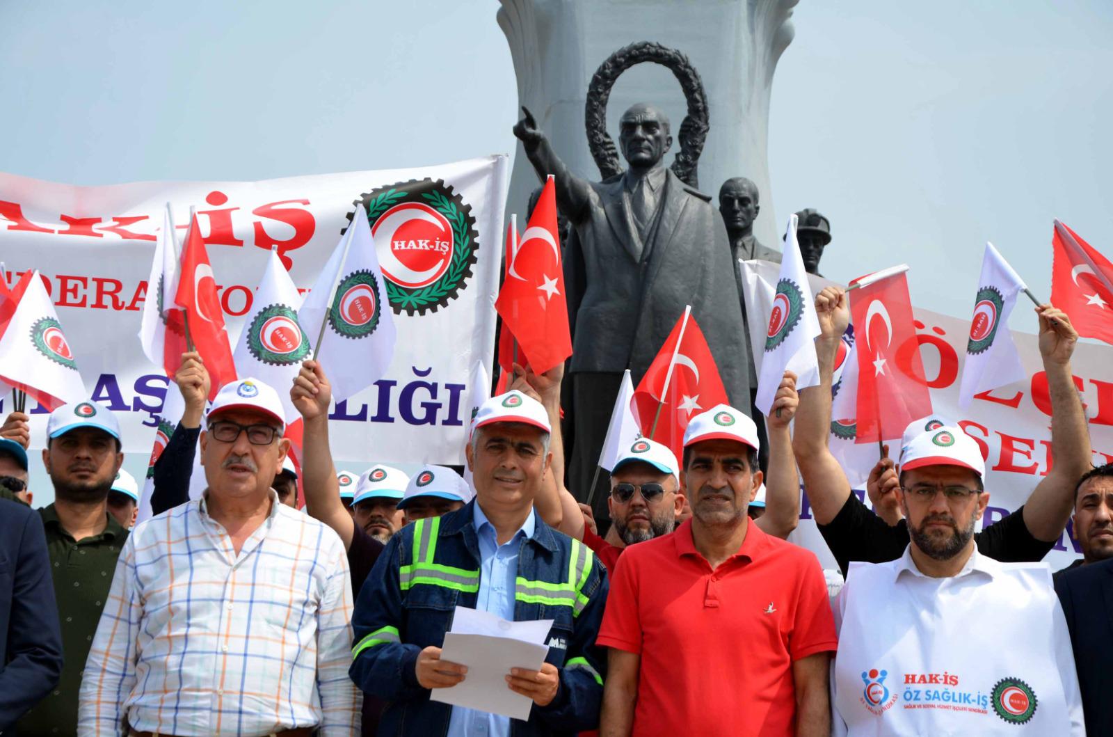 Platform adına konuşma yapan Hak-İş Konfederasyonu Hatay İl Başkanı ve Özçelik-İş Sendikası İskenderun Şube Başkanı Mehmet Güngör, emekçilerin hakkı için daha fazla gelir güvencesi, sosyal, ekonomik refah ve sorunların çözümü için taleplerini dile getirdi. Emekçilerin enflasyona karşı korunmasını da talep eden Güngör isteklerini şu şekilde sıraladı;