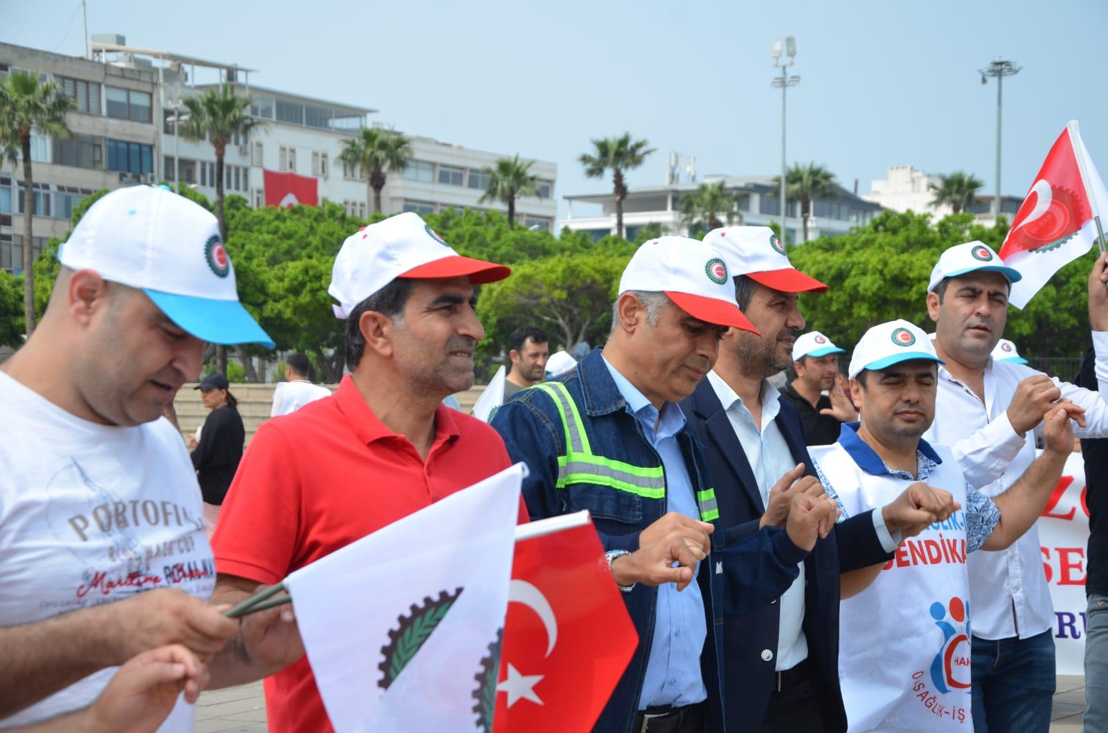 /Daha sonra söz alan Öz-Sağlık İş Sendikası Hatay Şube Başkanı Fehmi Azboy da; “Ülkemizin kalkınması, milletimizin refahı için canla başla alın ve akıl teri döken; güçlü Türkiye’nin mimarları tüm işçi ve emekçi kardeşlerimin 1Mayıs Emek ve Dayanışma Günü’nü tebrik ediyorum” dedi. (Haber Merkezi)