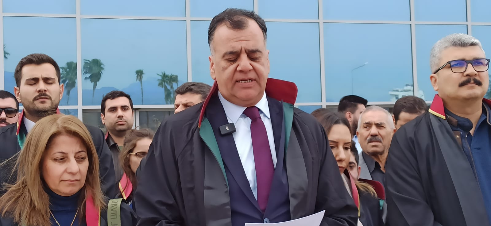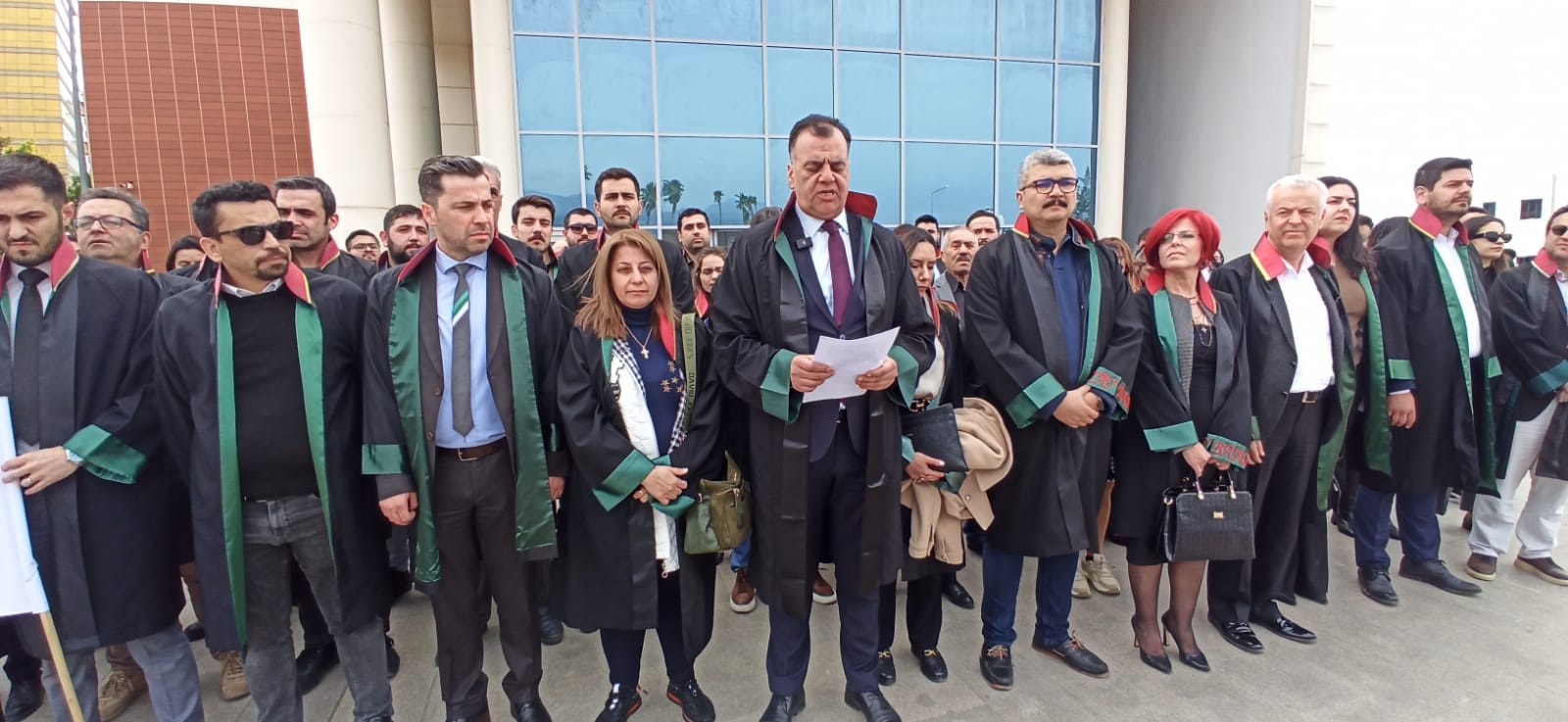 Adliye önünde toplanan avukatlar adına konuşan Hatay Barosu Başkanı Avukat Hatay Tut; “İstanbul Cumhuriyet Başsavcılığınca İstanbul Barosunun başkan ve yönetiminin görevden alınması talepli Avukatlık Kanunu’nun 77’nci maddesi uyarınca hazırlanan davaname ile İstanbul 2. Asliye Hukuk Mahkemesinde dava açılmıştır.Açılan dava ve verilen karar usul ve yasalara aykırıdır. Avukatlık Kanununun 76 maddesinde barolara yüklenen görev ve sorumluluk çerçevesinde yapmış olduğu açıklamadan kaynaklı İstanbul Barosuna amaç dışı faaliyette bulunduğu iddiasıyla söz konusu dava açılmış aynı zamanda başkan ve yönetim hakkında ceza soruşturması da başlatılmıştır” dedi.