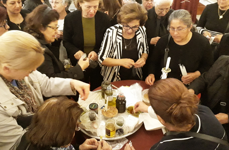 Cemaat üyelerinin evlerinden getirdikleri zeytinyağlarının bir araya konularak, üzerine dualar edilen ayin sonunda ise yağlı pamuk ve buğdaylar kilise kadın kolları üyeleri tarafından cemaate dağıtıldı.