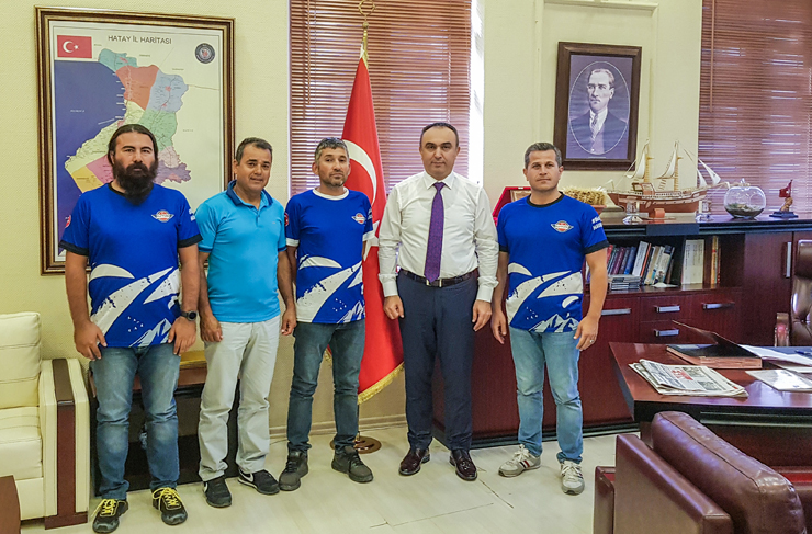 FLYTÜRK Havacılık Kulübü yönetimi, İskenderun Kaymakamı Recep Soytürk’ü makamında ziyaret etti. Ziyarette FLYTÜRK Havacılık Yönetim Kurulu Üyeleri Mehmet Karaömer, Yılmaz Verim, İsmail Zeytun, Berk Dingil yer aldı.