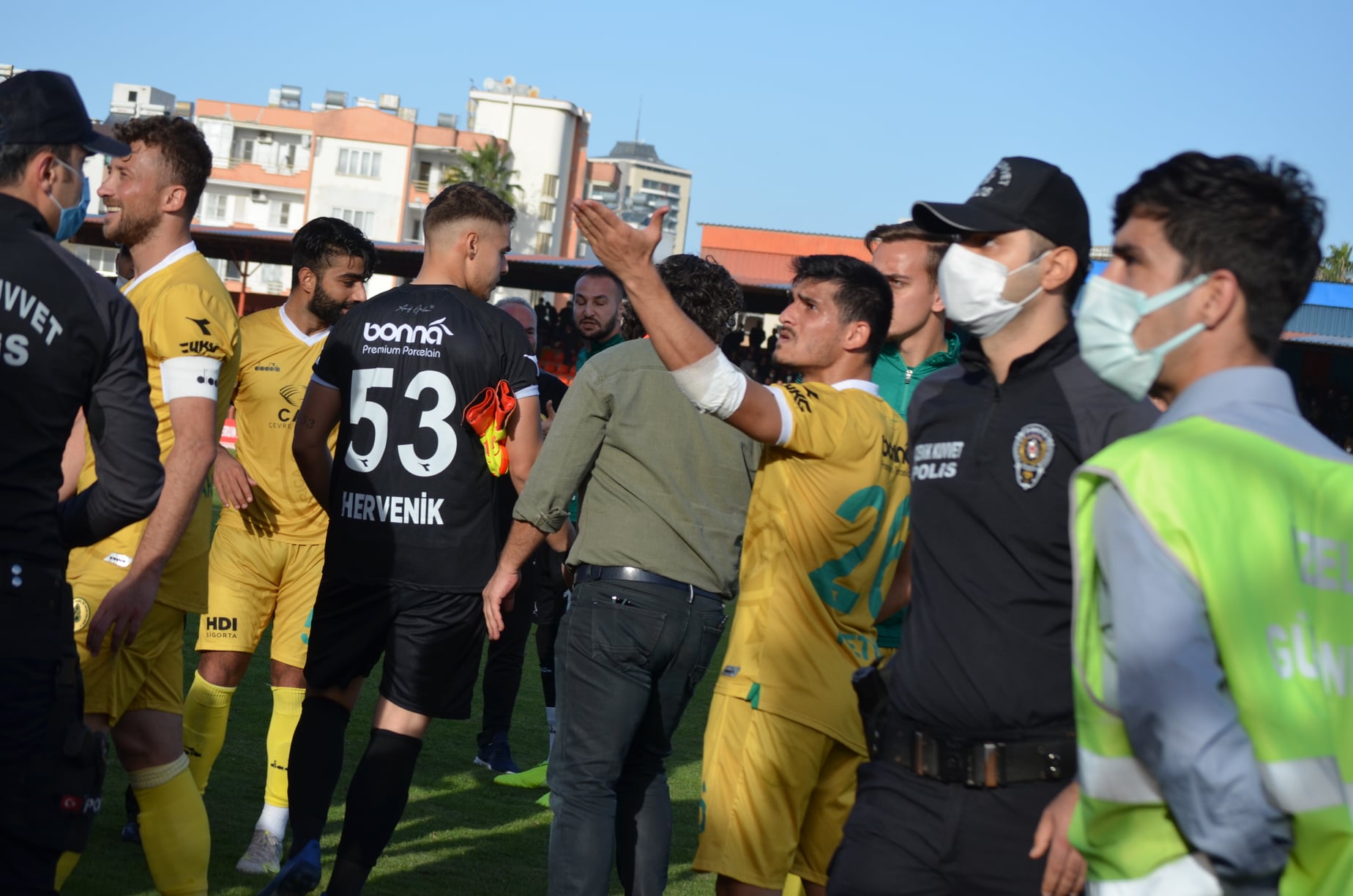 İskenderunspor Redoks Darıca Gençlerbirliği maçının sonunda istenmeyen olaylar da yaşandı. Maç boyunca yere düşen konuk ekibin futbolcularına maçın orta hakeminin de tutarsız yönetimi eklenince ortam oldukça gerildi. Maç sonunda Darıca ekibinin futbolcularının tahriki ve sahayı terk etmemeleri Turuncu-Mavilileri kızdırdı. Yaşanan arbedeler emniyet güçlerinin müdahalesi ile fazla büyümeden önlendi. (Haber: İlyas Edip TERBİYELİ)