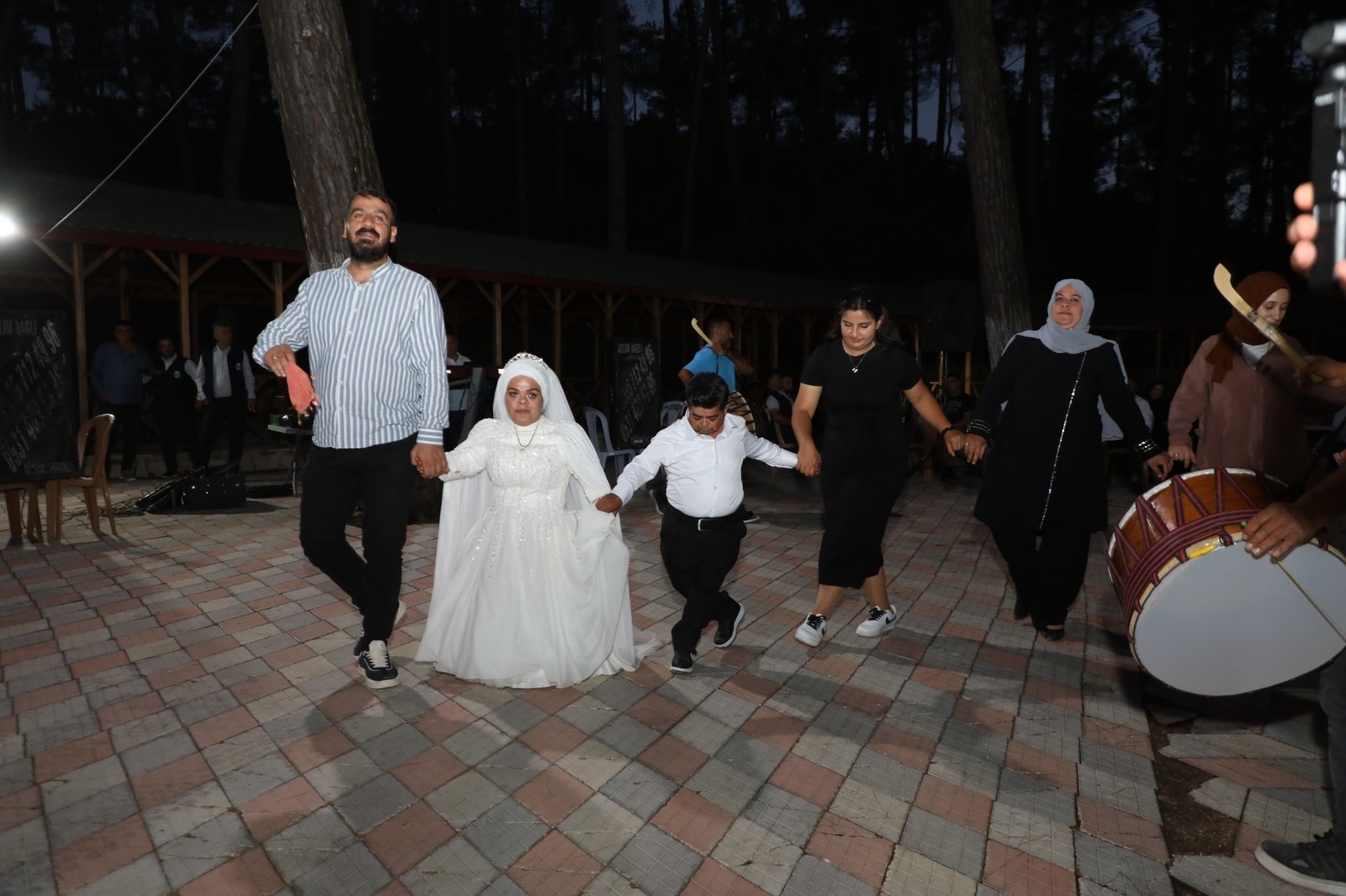 Kimsesi olmayan çifte, HBB Başkanı Mehmet Öntürk’ün selamlarını ileten Büyükşehir yönetici ve personelleri, düğün töreninde gelin ve damadın mutluluğunu paylaştı.