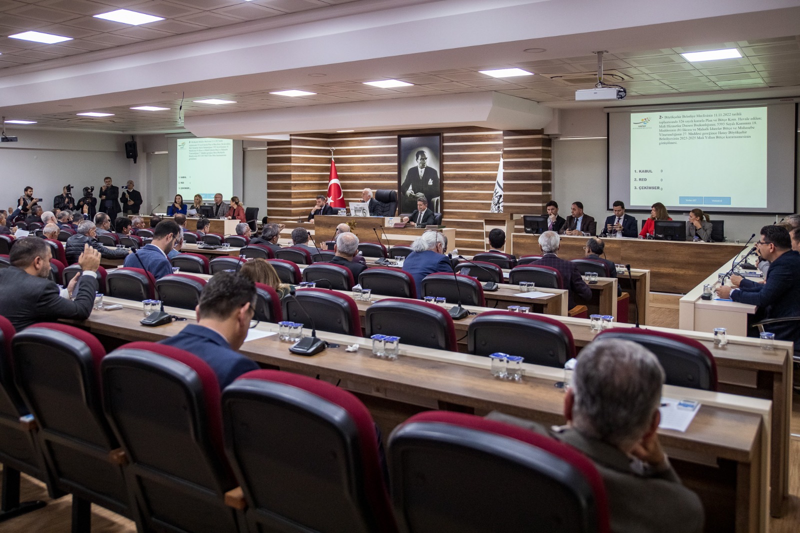 Hatay Büyükşehir Belediye Meclisi 2022 yılı Kasım ayı olağan toplantısının ikinci birleşimi gerçekleştirildi. Başkan Vekili Adnan Özkaya’nın yönettiği toplantıda HBB’nin 2023 yılı mali bütçesi, Plan ve Bütçe Komisyonu’nda gelir ve gider bütçelerinin denk olduğuna karar verilerek oy birliği ile kabul edildi.