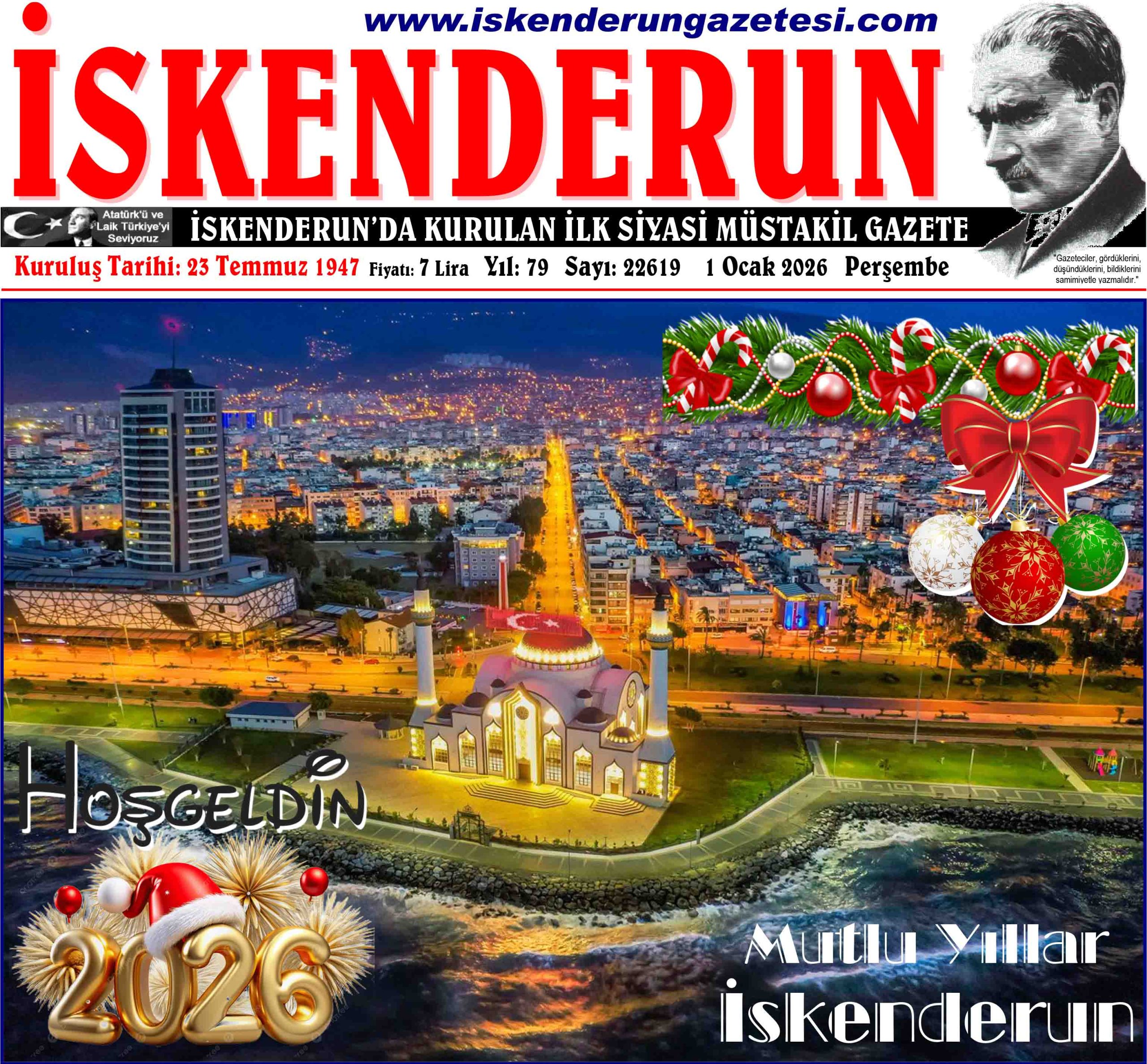 Tüm Okuyucularımızın ve İskenderun Halkının Yeni Yılını Kutlar, 2026’nın tüm bölge halkına ve tüm dünyaya Barış, Huzur, Bereket ve Mutluluk Getirmesini Temenni Ediyoruz.