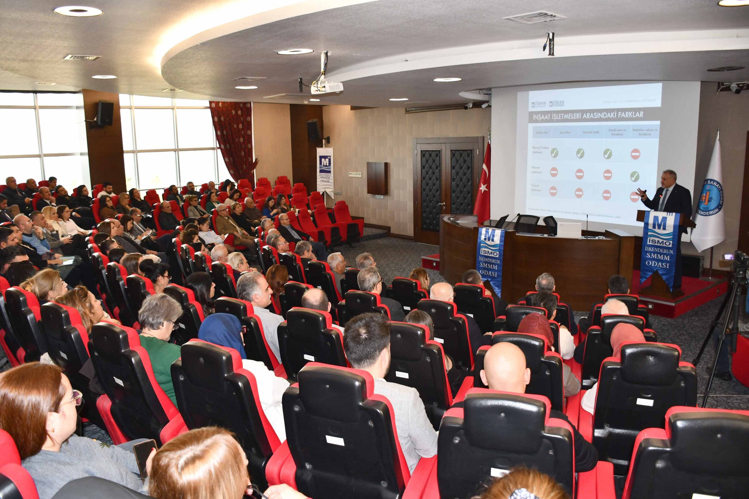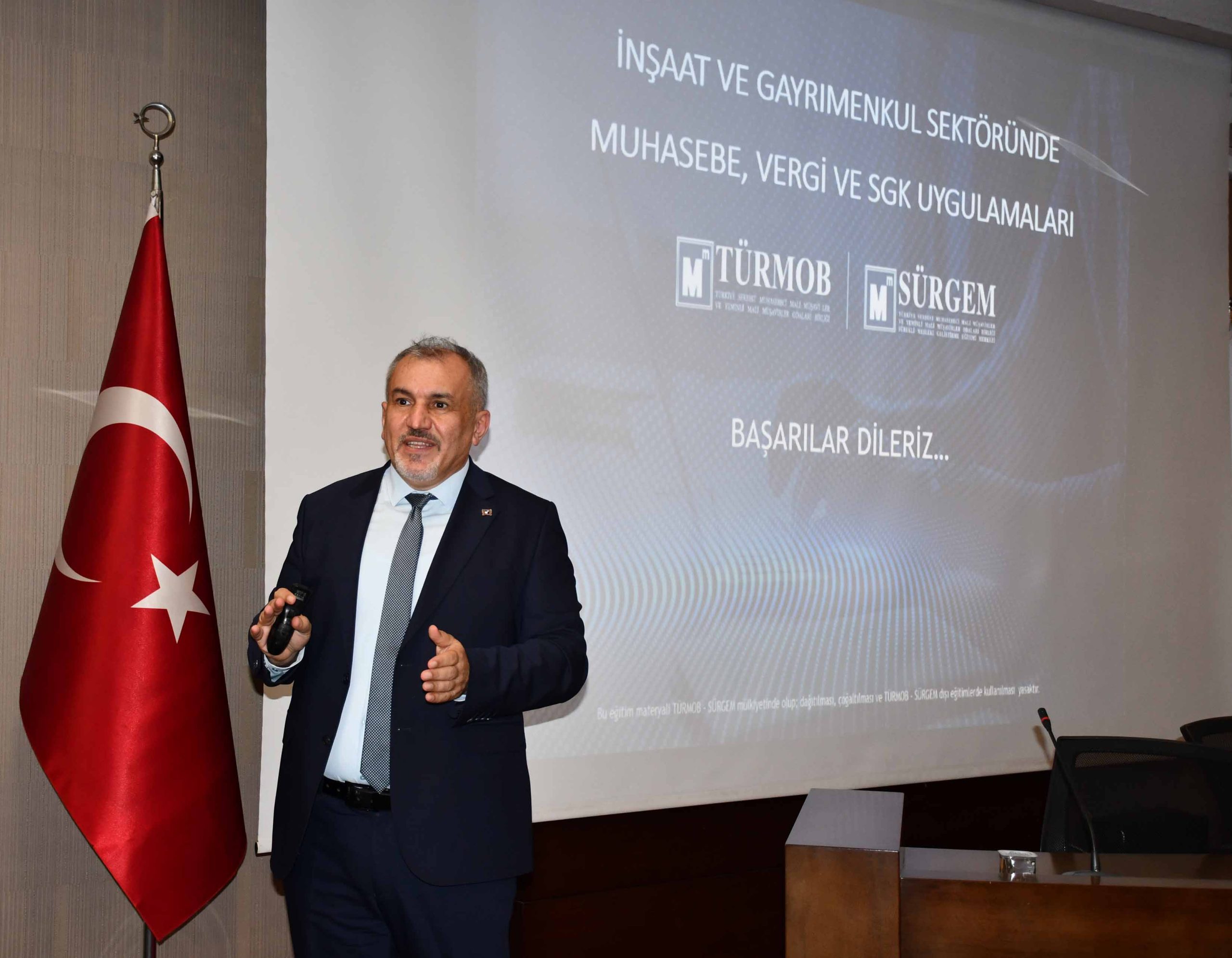 Yoğun katılımla gerçekleşen bilgilendirme ve eğitim seminerine konuşmacı olarak katılan TÜRMOB SÜRGEM Eğitmeni Nedim Boz, ‘İnşaat Vergi ve Muhasebe Uygulamaları’ Özel (Kişisel) kullanım için inşaatlar, Yap-Sat inşaatlar, Kat karşılığı inşaatlar, Hasılat paylaşımlı inşaatlar, İnşaat Taahhüt işleri, Yıllara sari İnşaat onarım işleri, İş ortakları, KDV ve SGK uygulamaları konularında katılımcıları bilgilendirdi.