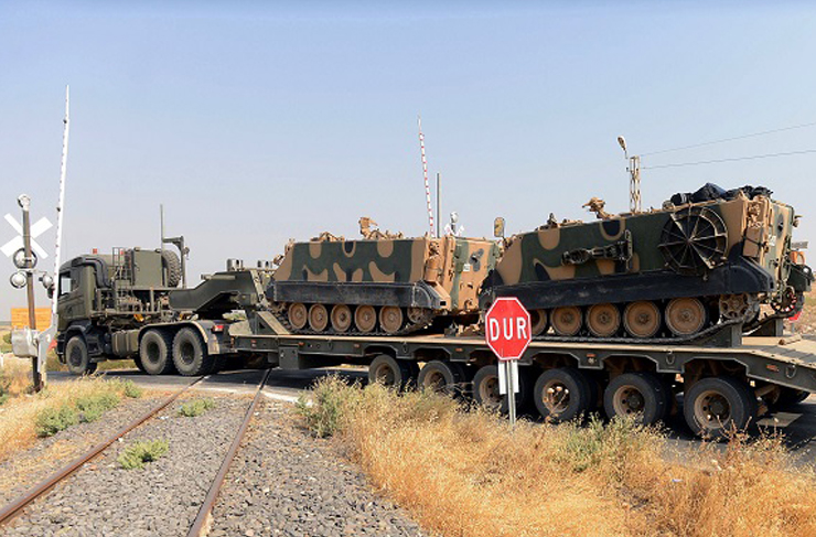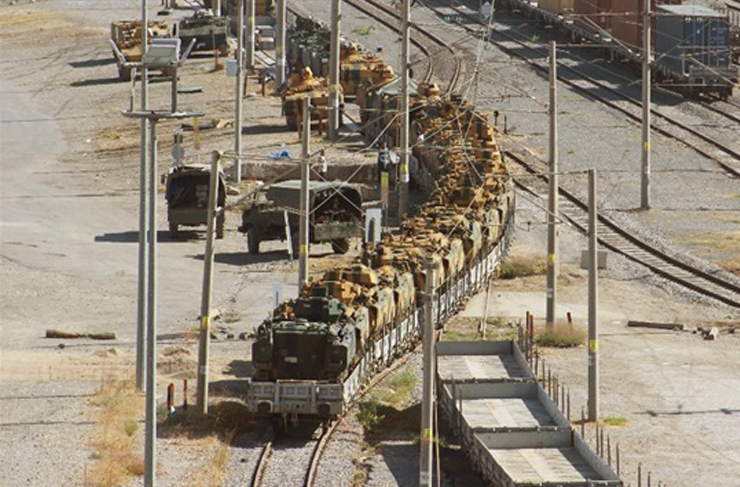 TSK’nın çeşitli birliklerinden demiryolu ile Hatay’a gelen zırhlı personel taşıyıcılar, hafta sonu İskenderun Demiryolu İstasyonuna ulaştı. Vagonlar üzerindeki çok sayıdaki zırhlı araç ve tank alınan güvenlik önlemleri dâhilinde askeri personeller tarafından indirildi.