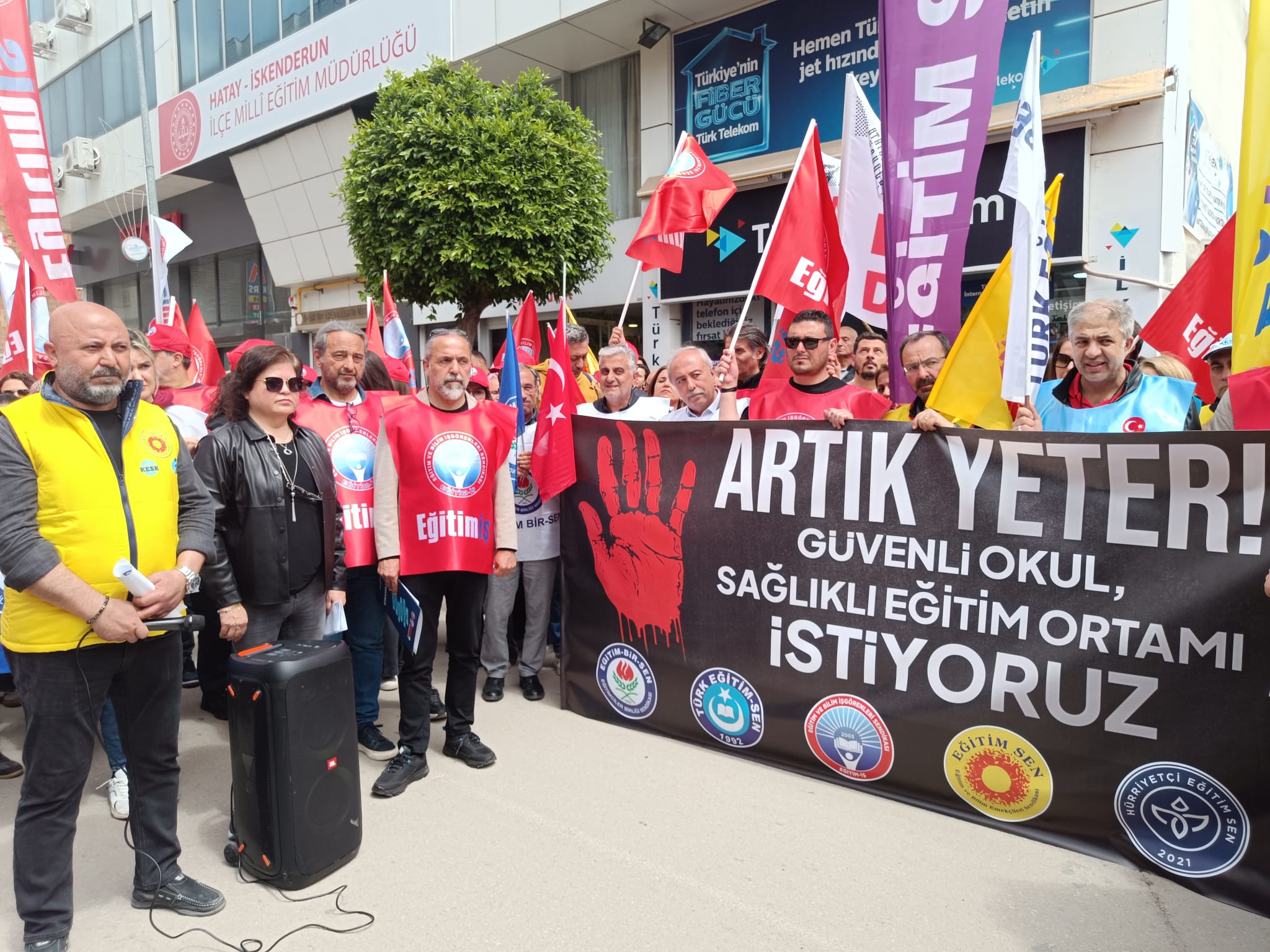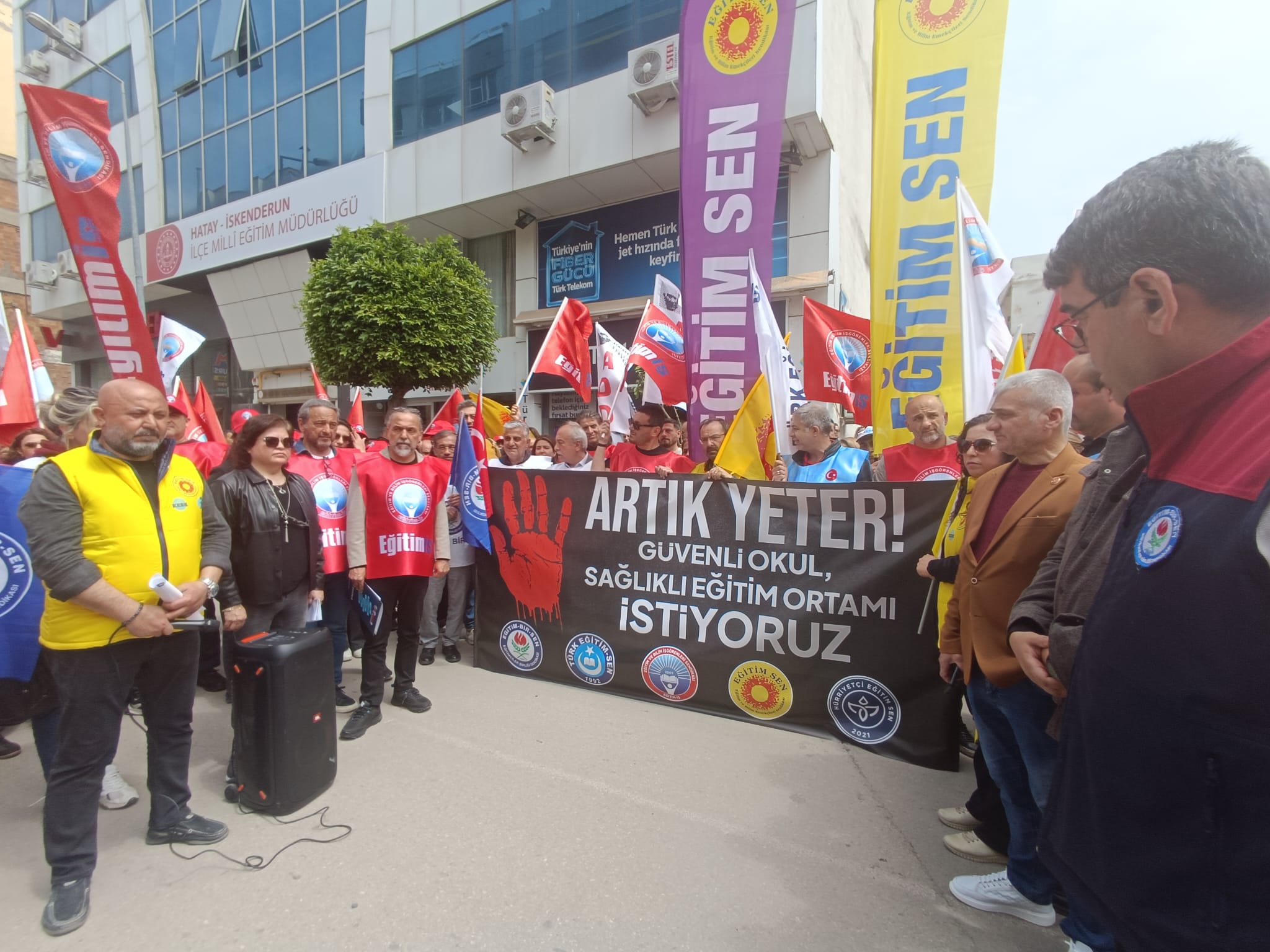 Eğitim Bir Sen İskenderun Şube Başkanı Cengiz Kaya şiddetin münferit olmaktan çıktığını vurgulayarak,; “Eğitimcilere yönelik saldırılar artık yaygın bir toplumsal sorun haline gelmiştir. Can güvenliği, eğitim-öğretimin önüne geçecek noktaya gelmiştir” ifadelerini kullandı. Kaya, devletin yaşam hakkını koruma yükümlülüğünü hatırlatarak caydırıcı düzenlemelerin acilen hayata geçirilmesi gerektiğini söyledi.