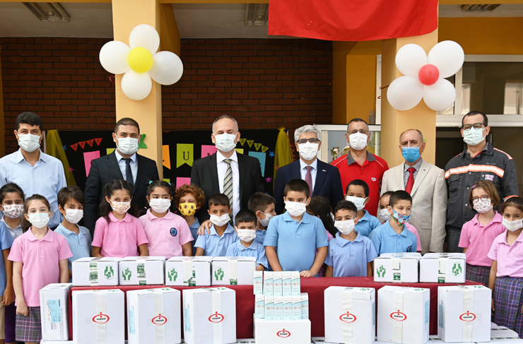 Bu doğrultuda toplamda 9 bin 350 adet dezenfektan İsdemir Genel Müdürü Mesut Keyfli tarafından, bölgedeki 125 okula dağıtılması için 7 Eylül 2021 Salı günü İskenderun Kaymakamı İskender Yönden’in de katılımıyla Hatay-İskenderun Demirçelik İlkokulu’nda gerçekleşen törende İlçe Milli Eğitim Müdürü Kemal Köseoğlu’na teslim edildi. Yönden, İsdemir’in eğitimle ilgili ihtiyaç duyulan her alanda desteğini esirgemediğini belirterek, sunduğu katkılar için İsdemir yönetimine teşekkür etti.