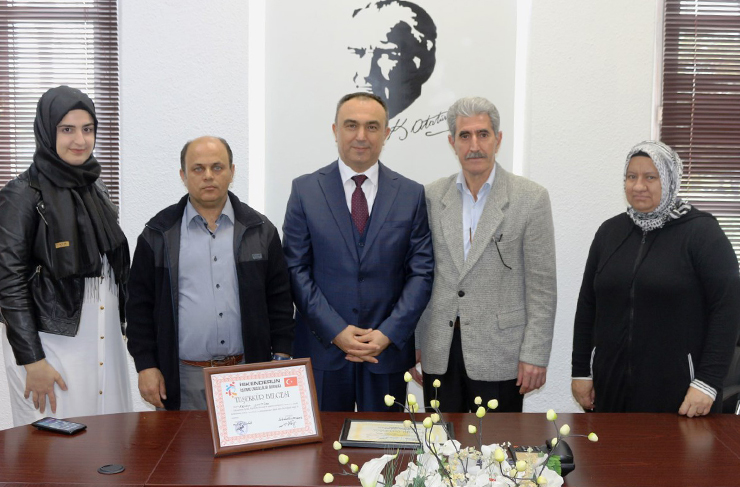 İşitme Engelliler Derneği tarafından tanzim edilen Teşekkür Belgesi’ni Kaymakam Soytürk’e takdim eden Başkan Mehmet Çörtük ve 2.Başkan Sabahattin Kaymaz ile yönetim kurulu üyeleri günün anısına bir de fotoğraf çekildi.