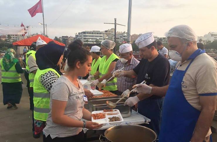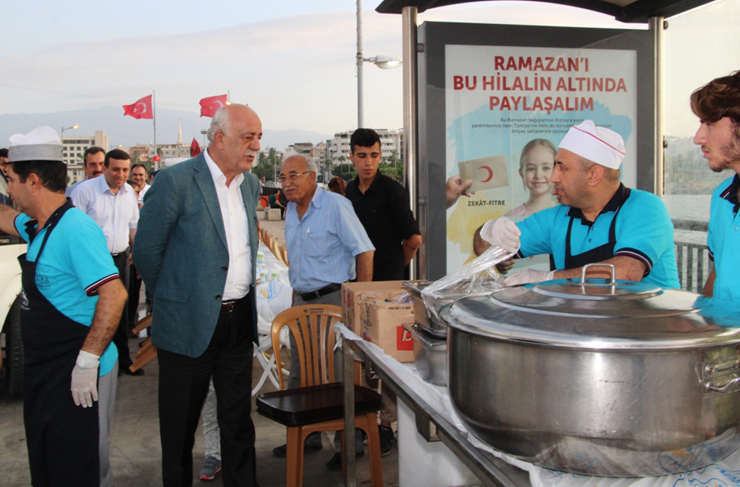 İskenderun Belediye Başkanı Seyfi Dingil, her gün iskelede kurulan iftar sofralarında vatandaşlarla bir araya geliyor.