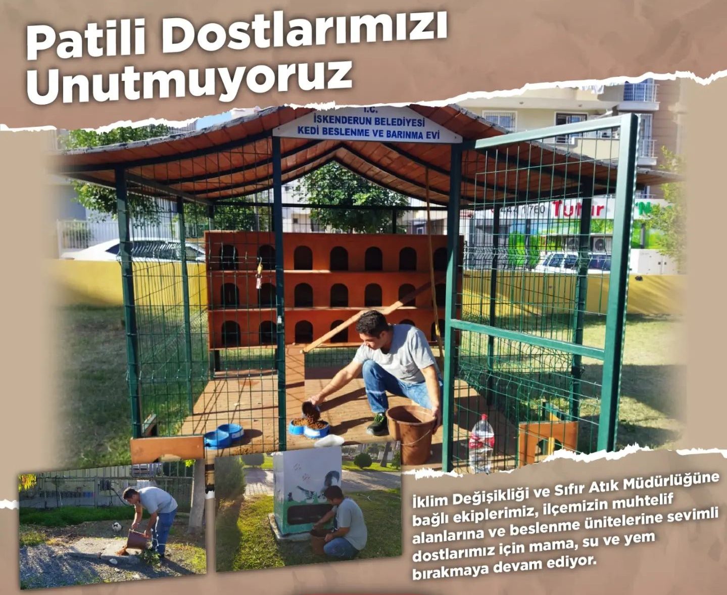 İskenderun Belediyesi İklim Değişikliği ve Sıfır Atık Müdürlüğüne bağlı ekipler yiyecek bulmakta güçlük çeken sokak hayvanları için düzenli olarak besleme çalışması yapıyor.