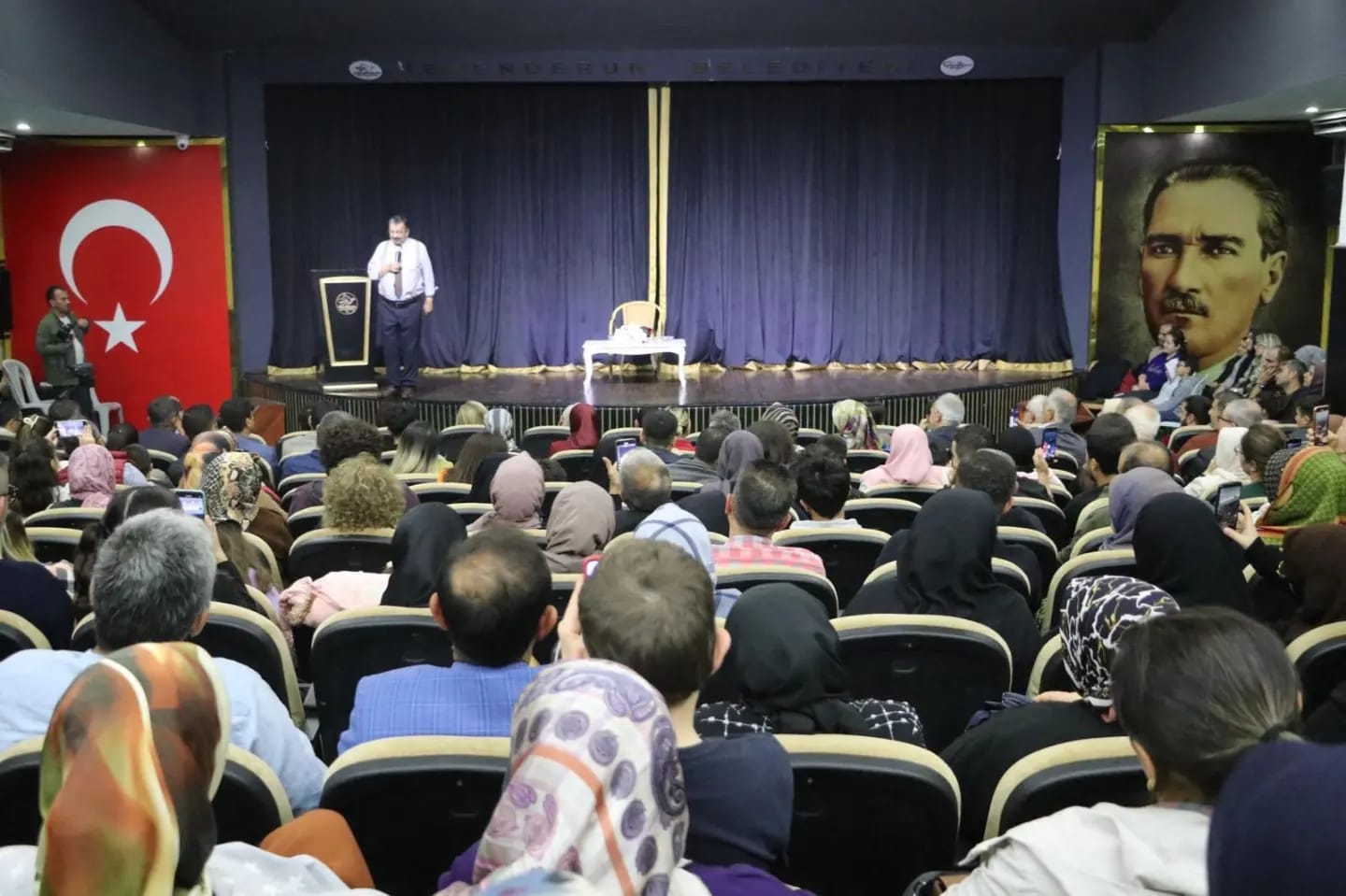 Hukukçu, Araştırmacı ve Eğitimci Yazar Hayati İnanç, dilimiz ve divan edebiyatının güzelliklerini ilçe sakinleriyle paylaştı.  Salonu hıncahınç dolduran kalabalığa hitap eden İnanç, divan edebiyatından beyitler okuyarak yaşama dair önemli nasihatlerde bulundu.