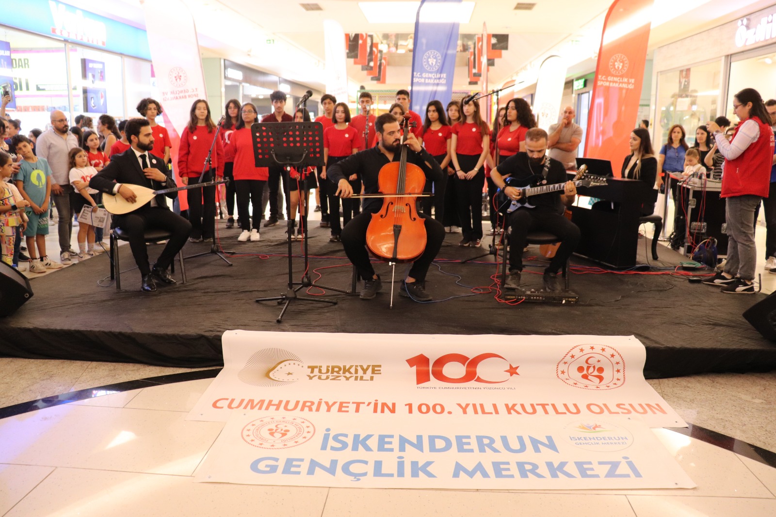 İskenderun Gençlik Merkezi Piyano, Gitar, Bağlama eğitmenlerinin ve öğrencilerinin hazırladığı koro, solo ve piyano resitaliyle müzik ziyafeti yaşandı. Şenliğe katılan İskenderun Koordinatör Kaymakamı Miyase Demirkoparan, her bir alanı gezerek gençlerle sohbet etti ve turnuva, yarışmaların madalyalarını gençlere takdim etti. Akıllara kazınan “Geçmişin Mirasıyla Yeni Yüzyıla Bilim Kültür ve Sanatla…” şenliğinin ardından 29 Ekimde Cumhuriyet Bayramı 100.yıl Kortej Yürüyüşü törenine gönüllü gençleri, tüm çalışanları ve İskenderun Gençlik Merkezi engelsiz atölyesinde yer alan Down Sendromlu öğrenci ve velileriyle katılarak törende kendilerini gururla temsil etti.