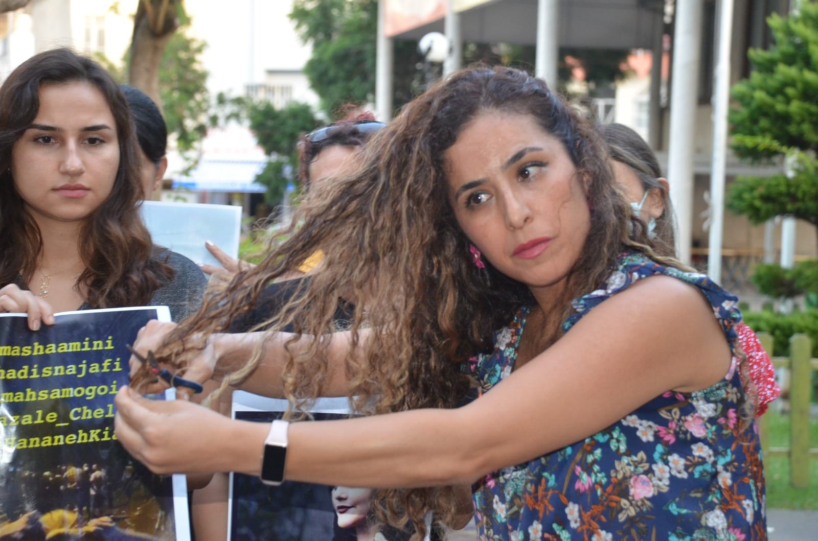 İskenderun Kadın Platformu, İran’da ahlak polisi tarafından kadınlara uygulanan şiddeti protesto etmek amacıyla bir araya gelerek, İranlı kadınlara gönderilmek üzere saçlarını sembolik olarak kesti.