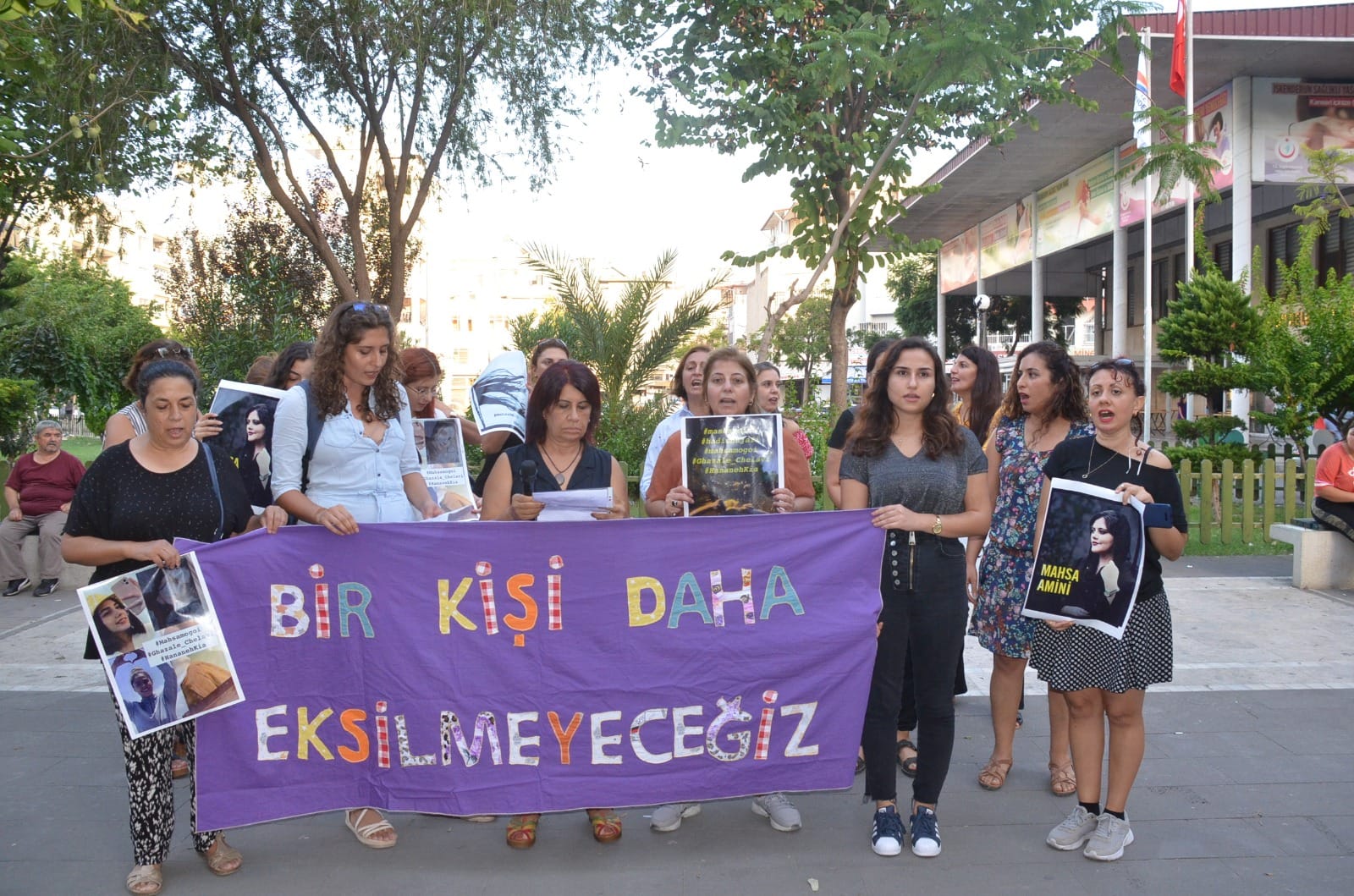 Sağlıklı Yaşam Parkı önünde toplanan İskenderun Kadın Platformu üyeleri, zılgıtlarla ve ‘Bir kişi daha eksilmeyeceğiz’ sloganıyla İran’da yaşananları protesto etti.
