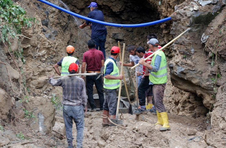 Dağın yamaçlarındaki zor arazi şartlarında su gözü tespit ederek harekete geçen HATSU ekipleri, mahalleye suyu iletmek için bölgedeki su gözünde 2 adet kaptaj yapımı ve ana hatta bağlantısının yapılması için ise 75’lik ve 110’luk polietilen borular ile 400 metre hat döşeme çalışması gerçekleştirdi.