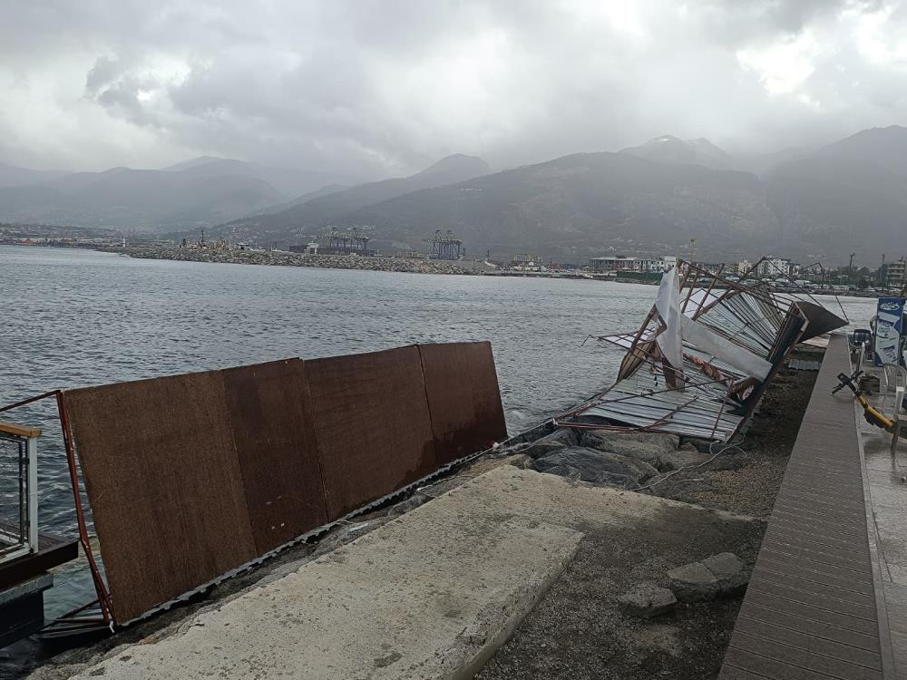 Ramazan şenliği kapsamında Atatürk Anıt Alanında, iskele çevresinde kurulan yöresel pazar alanındaki profilden ve ahşaptan yapılan bazı stantlar, sabaha karşı şiddetini artıran rüzgâra dayanamadı. Rüzgarın etkisiyle yerinden sökülen stantlar adeta kağıt gibi savrularak denize ve kayalıkların üzerine fırladı. Bazı stantların parçalanarak denize sürüklendiği görüldü.