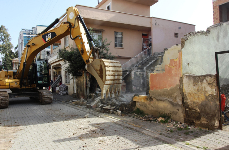 İskenderun’da can ve mal güvenliği açısından tehlike arz eden ve aynı zamanda görüntü kirliliği oluşturan yapılar İskenderun Belediyesi tarafından tek tek yıkılmaya devam ediyor.