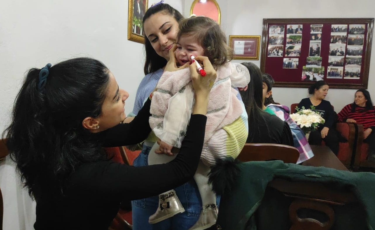 Çocukların bu eğlenceli dakikalarına, İskenderun Aziz Nikola Rum Ortodoks Kilisesi pederlerinden Yusuf Nicholas Papasoğlu da eşlik etti. Etkinlikte ayrıca Peder Papasoğlu’nun bir yaşını dolduran kızı Anna Marina’nın doğum günü de pasta kesilerek kutlandı.