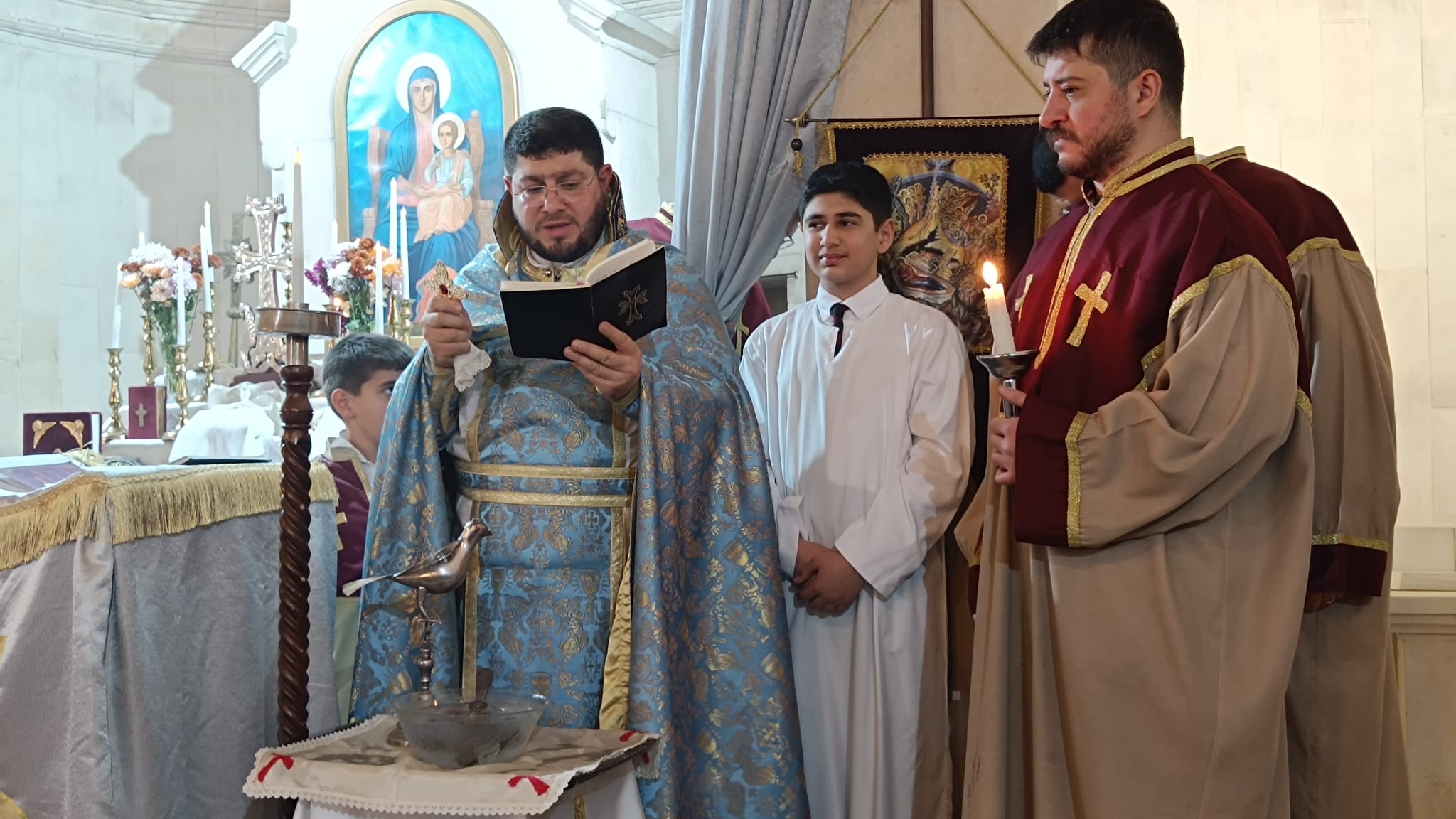 Ayinde verdiği vaazında, bayramın anlamından söz eden Peder Tabaşyan; “Bir ahırın içinde doğan İsa Mesih’in, bugün doğuşunu kutluyoruz. O İsa Mesih ki bütün kralların ona geldiği, çobanların müjdeler verdiği ve bugüne kadar da onun isminden büyük şeyler istenilen Rab İsa Mesih’tir! Yargılamak için gelmedi bu dünyaya, ışığı parlasın diye geldi. Eğer yüreklerimizde de o ışık varsa Rabbim yüreklerimize doğmuştur.