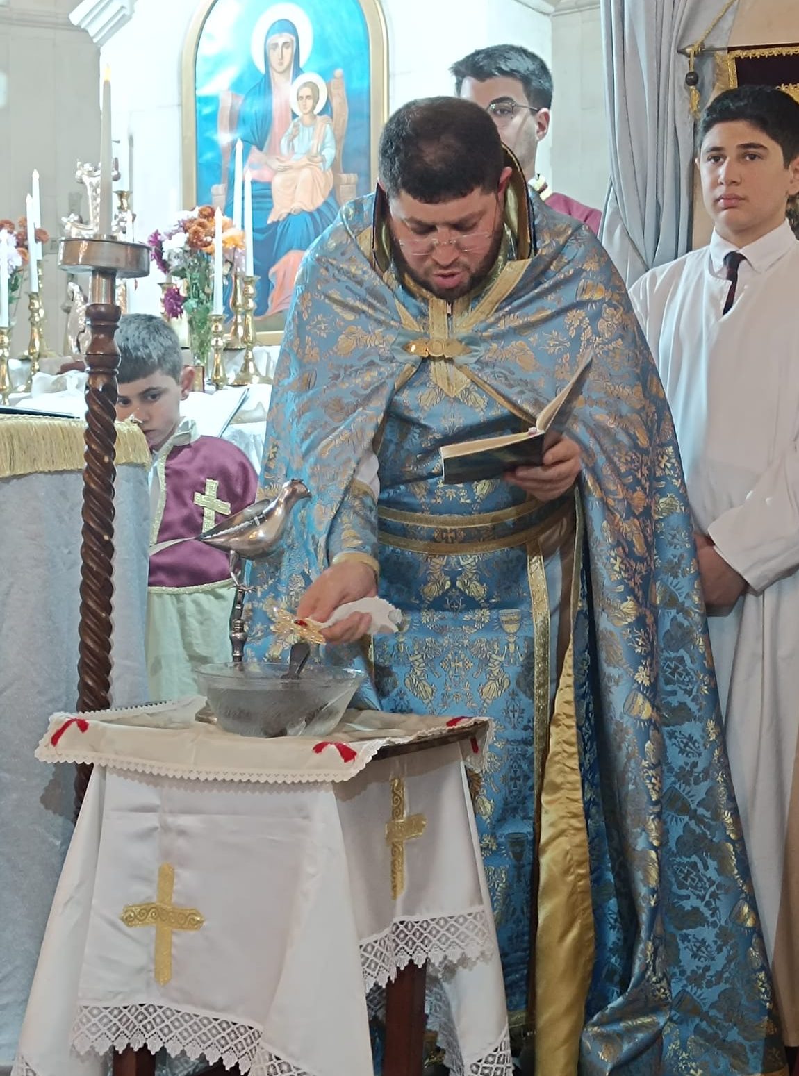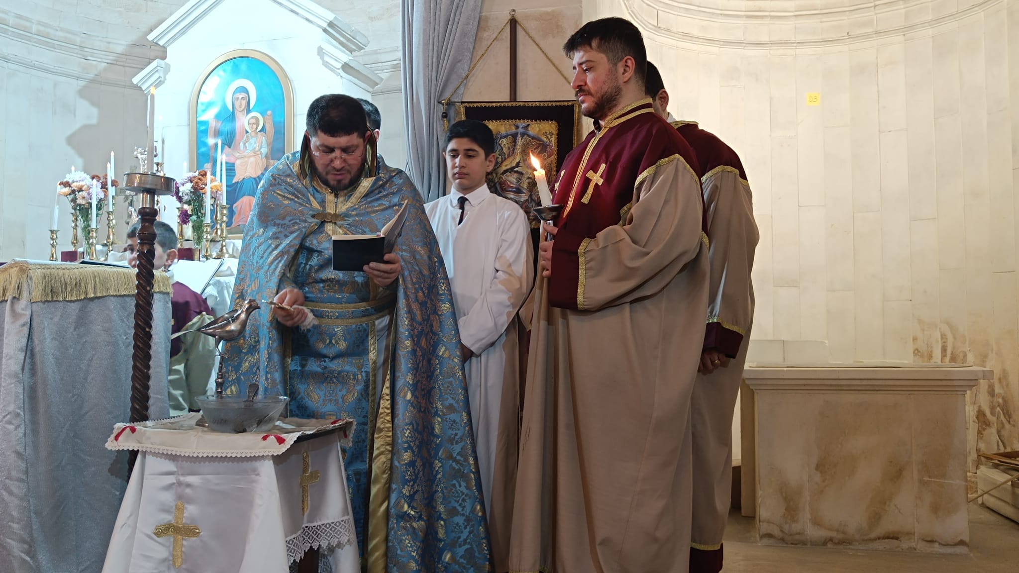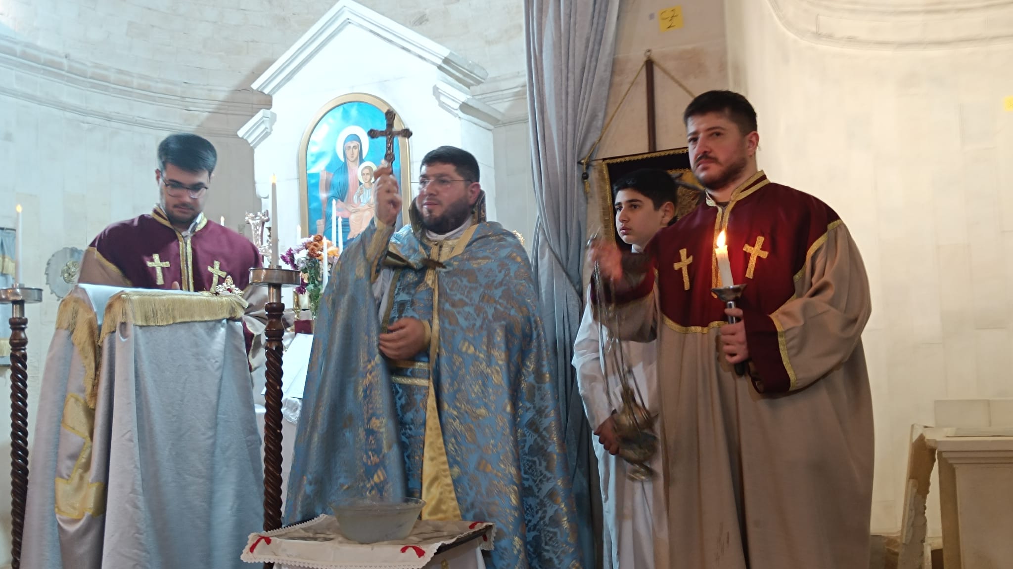 Ayin sonunda ise İsa Mesih’in vaftiz edilişi, temsili bir şekilde haçın suya batırılıp çıkartılması ile gerçekleştirildi. Cemaat mensupları daha sonra ilahiler eşliğinde kutsanan ekmek, tuz ve sudan alarak bayram bereketini evlerine taşıdılar.