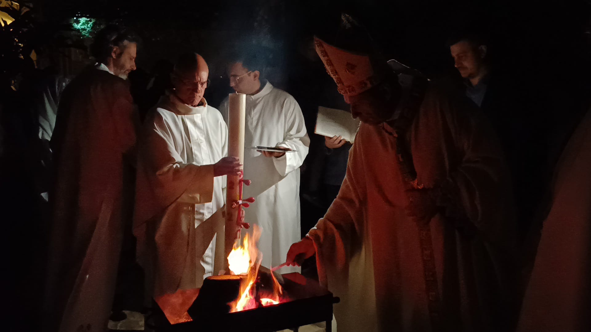Paskalya Ayini, kilise bahçesinde yakılan ateşin etrafındaki törenle başladı. İsa’nın ışığını simgeleyen ateşle Paskalya Mumunun yakıldığı bahçedeki törenin ardından pederlerin önderliğinde tüm cemaat üyeleri kiliseye girdiler.