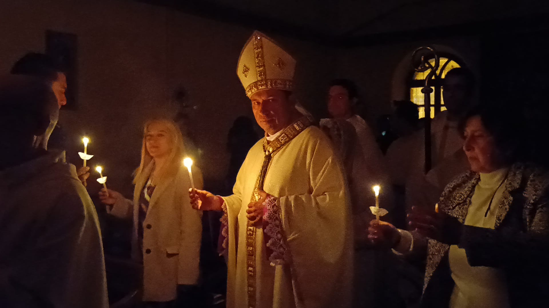 Karanlık olan kilise içerisine giren rahipler ve cemaat üyeleri ellerindeki mumlarla kiliseyi aydınlattılar. Kilise içerisinde devam eden ayinde, Paskalya’nın, tüm dünyaya barış getirmesi, insanları yanlış düşüncelerden, hastalıklardan, kötülüklerden, yanlışlıklardan uzaklaştırması, hastaları sağlığına kavuşturması, zor durumdaki mültecileri evlerine ulaştırması yönünde dualar edildi.